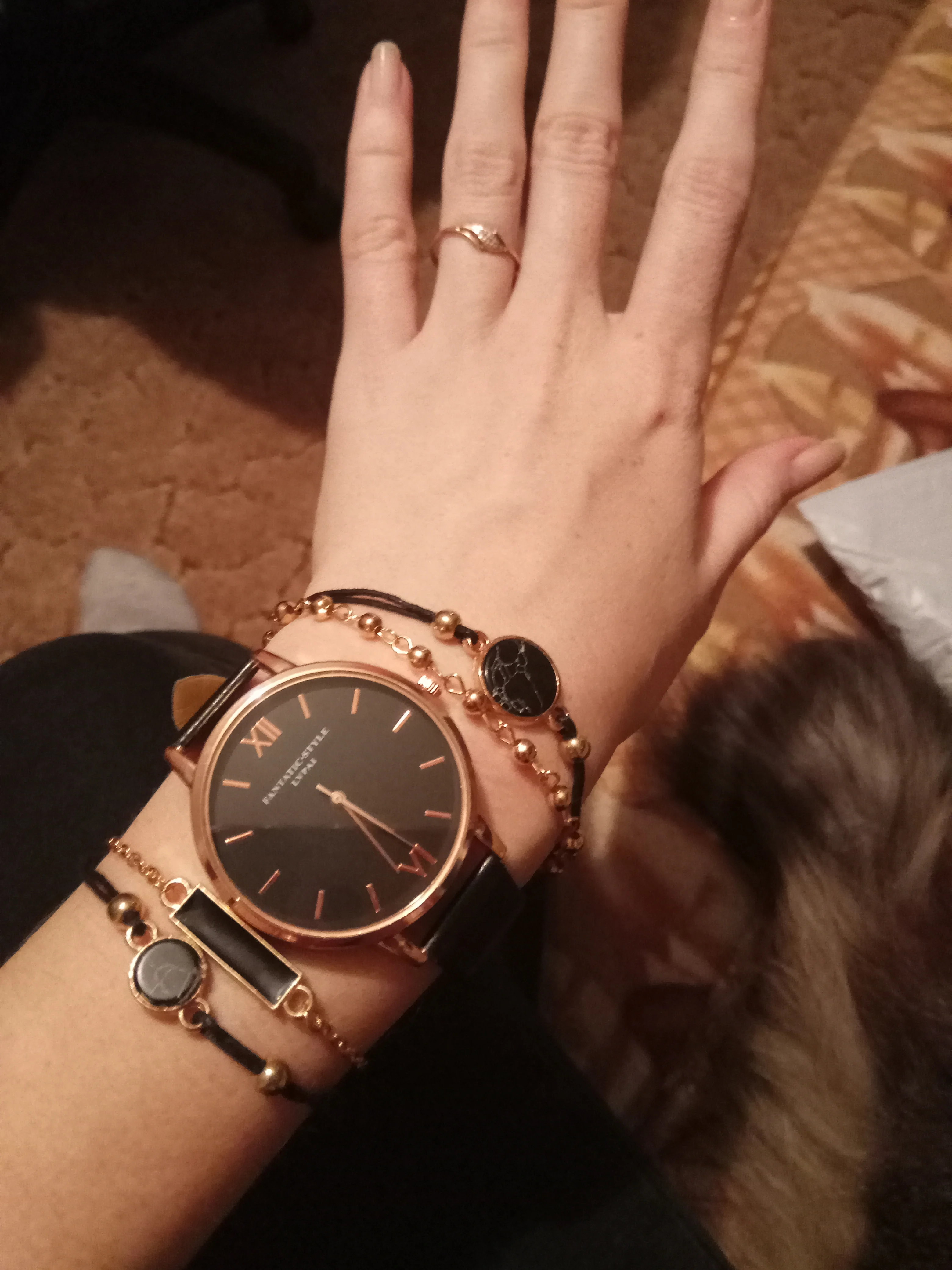 прикольные часики, на руке смотрятся хорошо. Это скорее аксессуар, все просто склеенное, одноразовое. Браслетики легкие, путаются, просто хаотично можно носить. В целом, мне нравится Доставка 47 дней