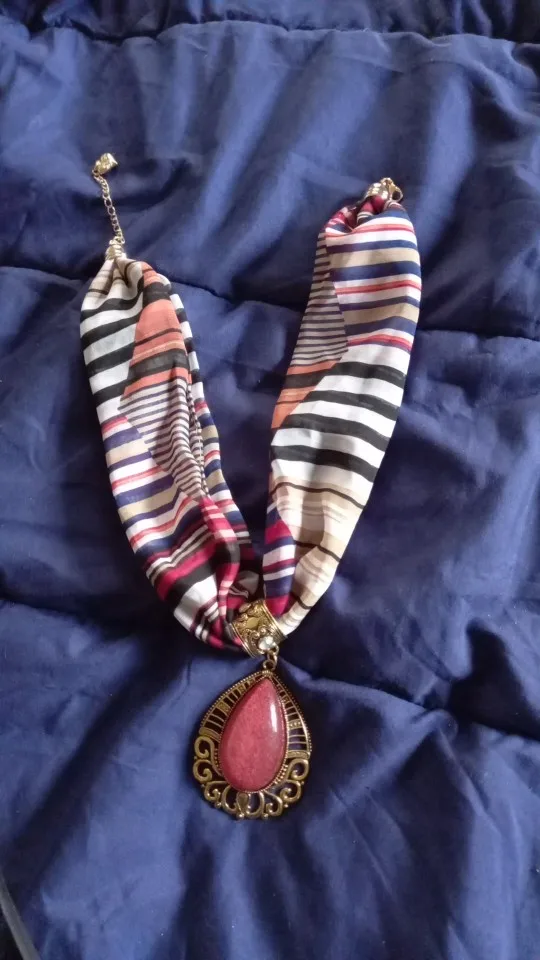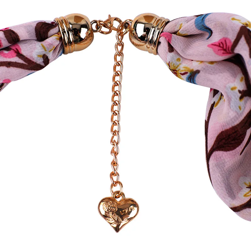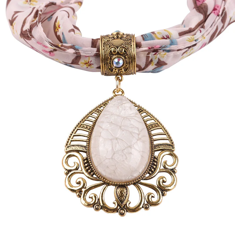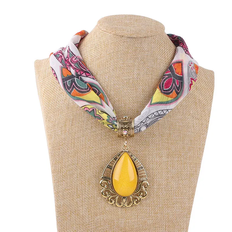 Женский шарф-ожерелье в форме капли воды, шифоновый шарф с принтом, шейный шарф с подвеской из сплава, богемный головной платок