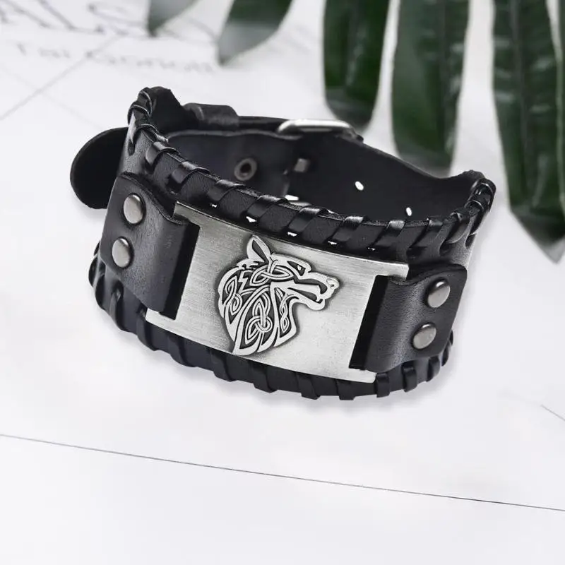 Винтажный Мужской плетеный браслет, широкий кожаный регулируемый браслет, винтажные широкие браслеты, скандинавский стиль