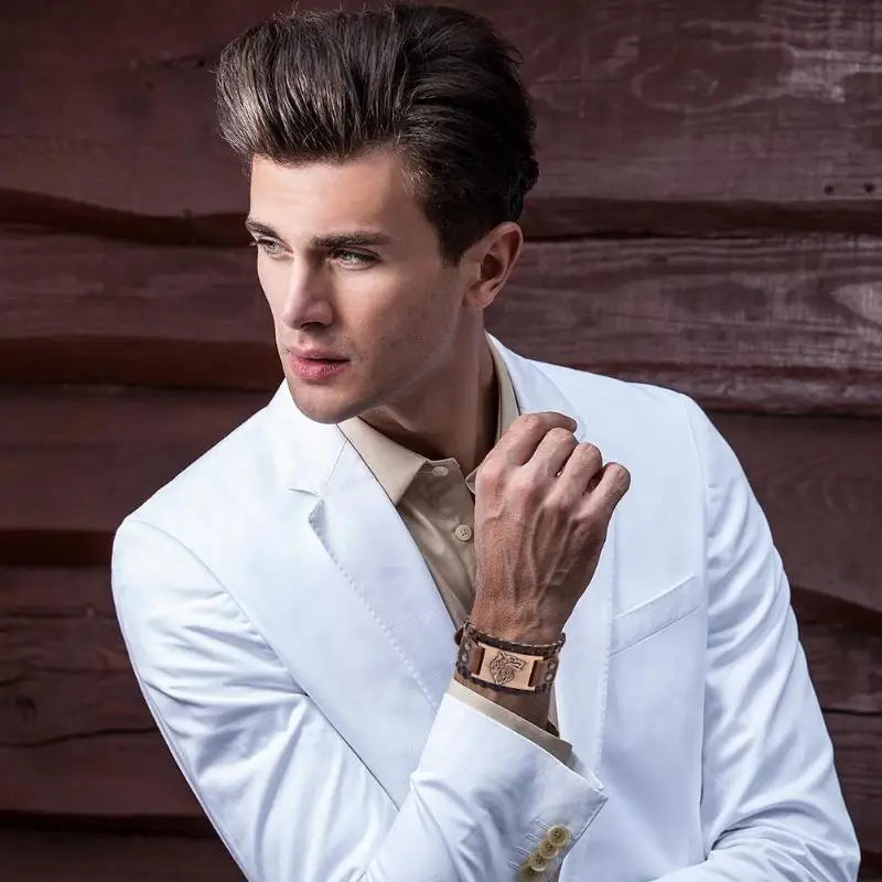 Кожаный плетеный браслет для мужчин, винтажный браслет с изображени...