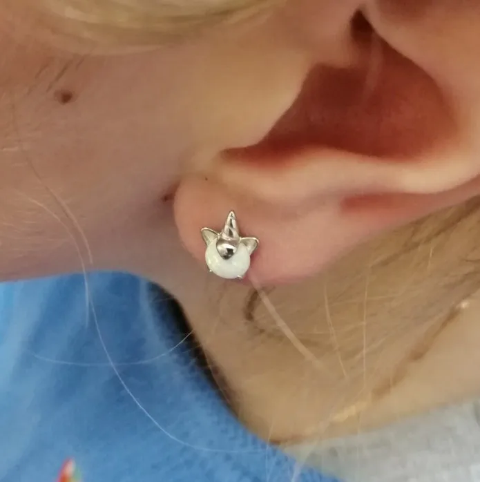 Серьги полностью соответствуют описанию и фото. Очень аккуратные и красивые. Единственное, длинноваты сами гвоздики. Возможно, попробую укоротить у ювелира, чтобы не кололись. Потому что если не плотно прижимать застежкой, постоянно перекручиваются вниз головой)) а если придать, то торчать гвоздики. В целом все отлично, ребёнок счастлив)