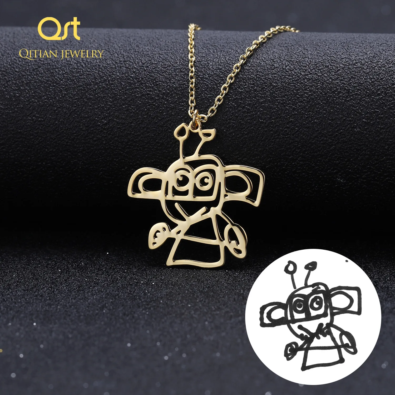 Детское ожерелье с рисунком на заказ, детское художественное искусство, персонализированные ожерелья с граффити, индивидуальные украшения с вашим именем и логотипом