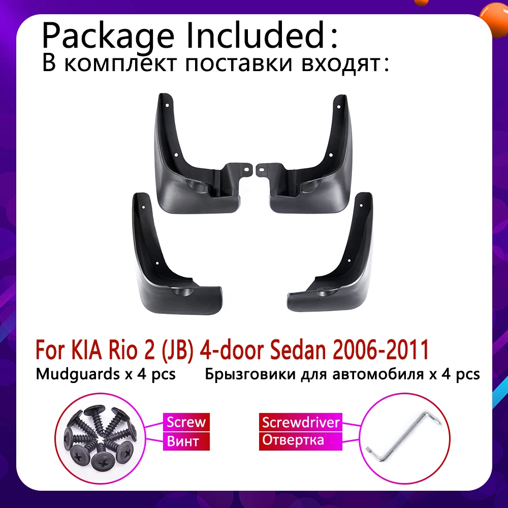 4 шт., брызговики для KIA Rio 2 JB Sedan 2006 2007 2008 2009 2010 2011