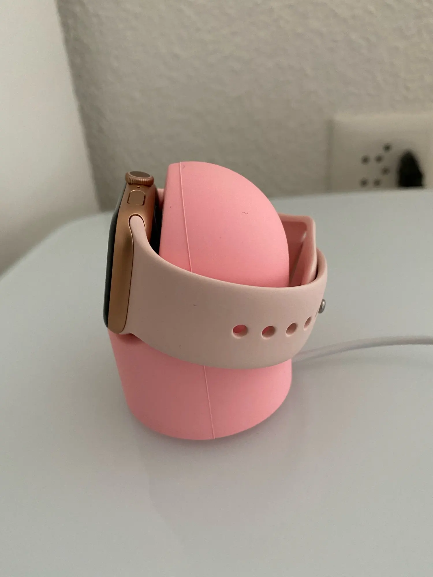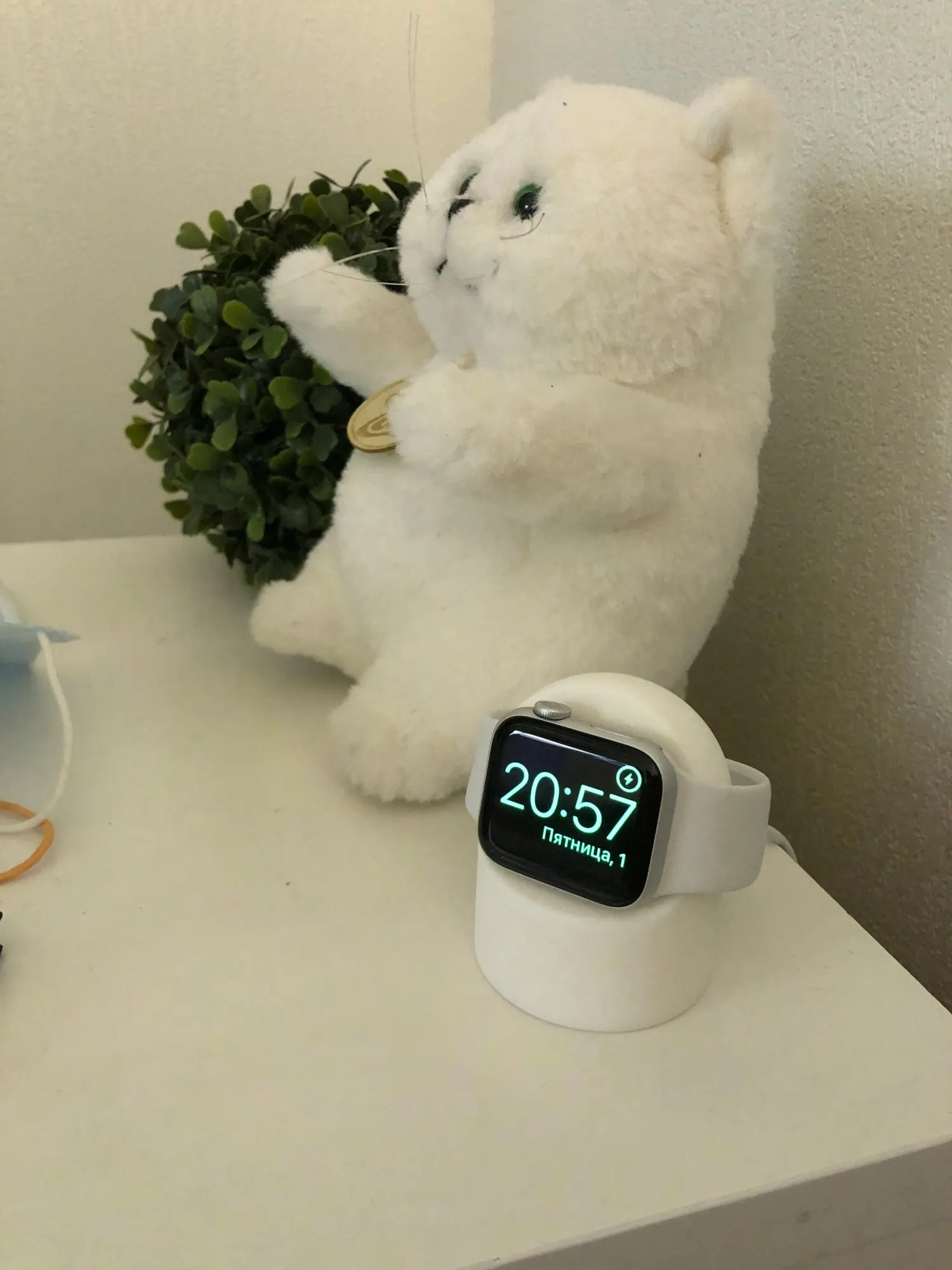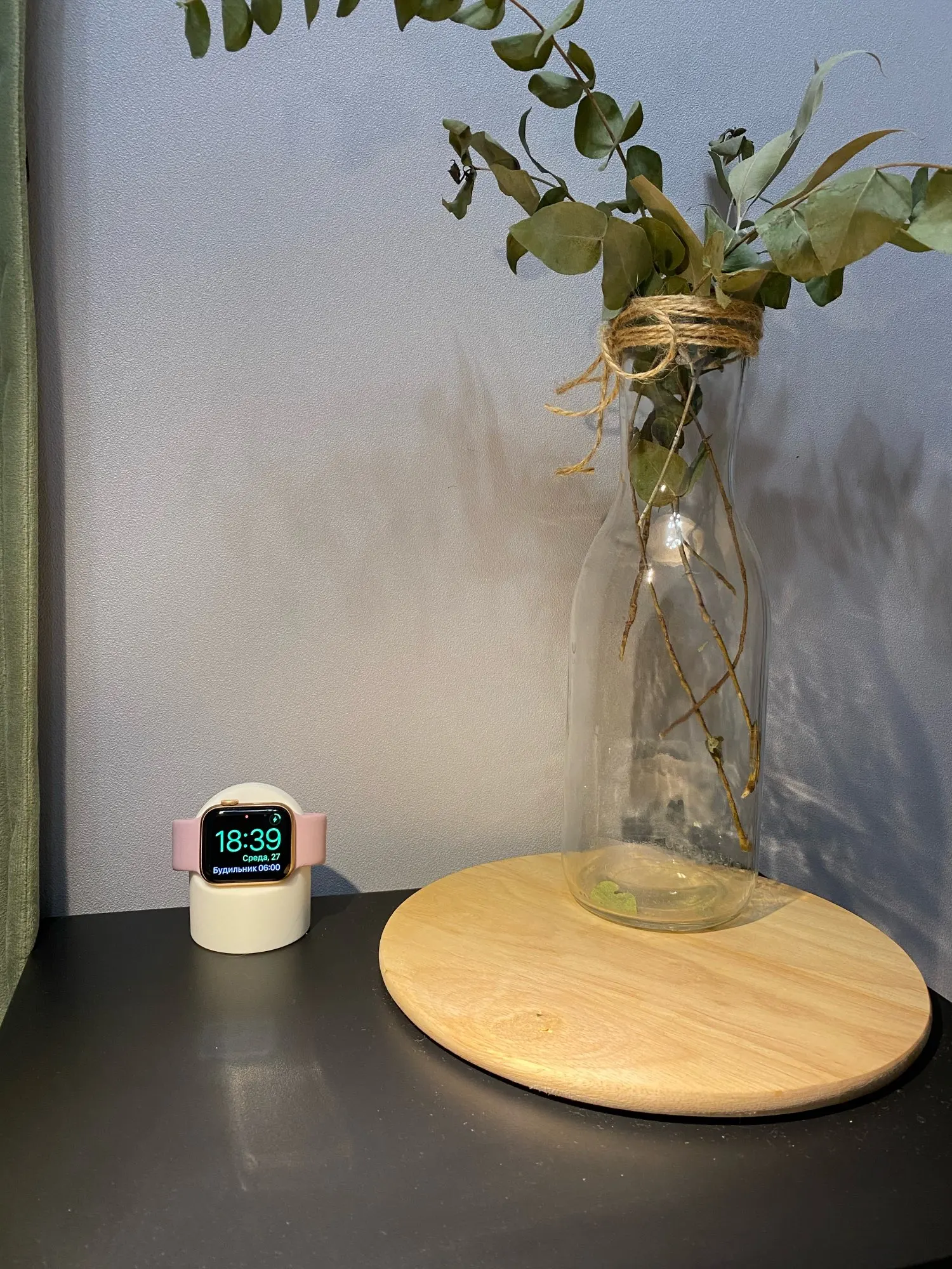 Очень Классная подставка для часов. До этого пользовались докстанцией. Теперь эта малышка ее заменила. Тяжёленькая, без запаха, приятная на ощупь. Брали в двух цветах . Белый и серый. Очень круто смотрится, стильная. Удобно брать с собой. С продавцом не общалась. Пришло примерно дней за 10