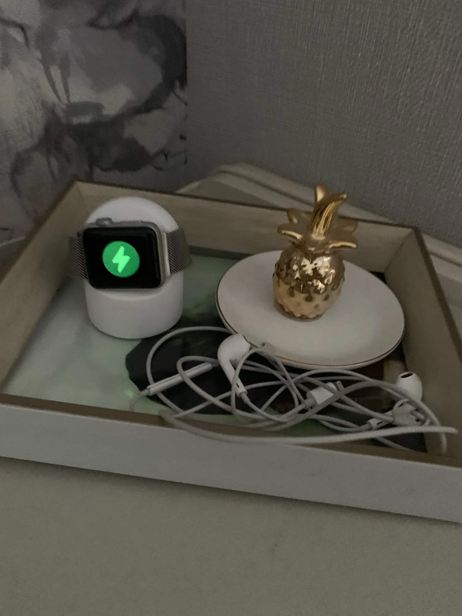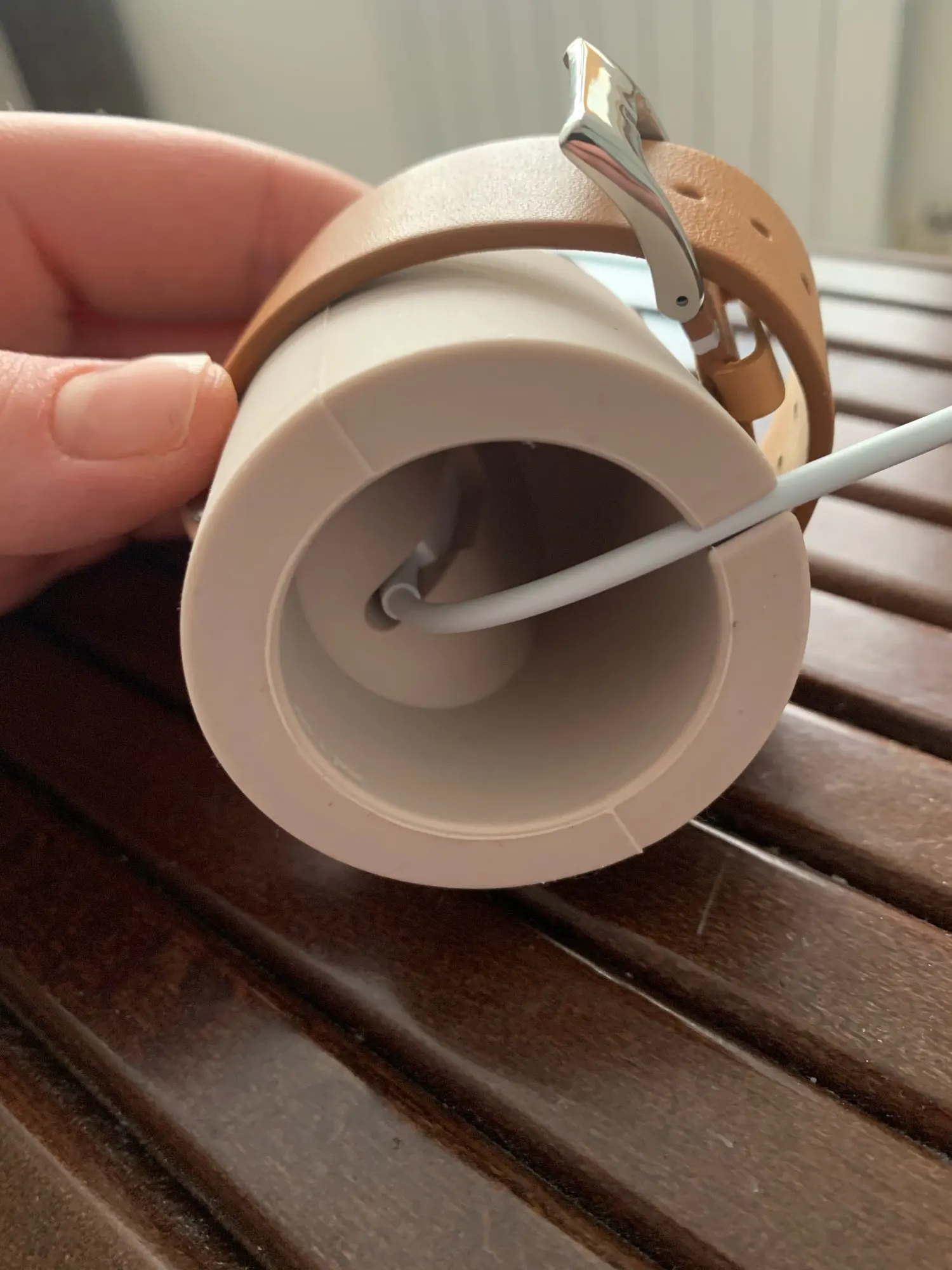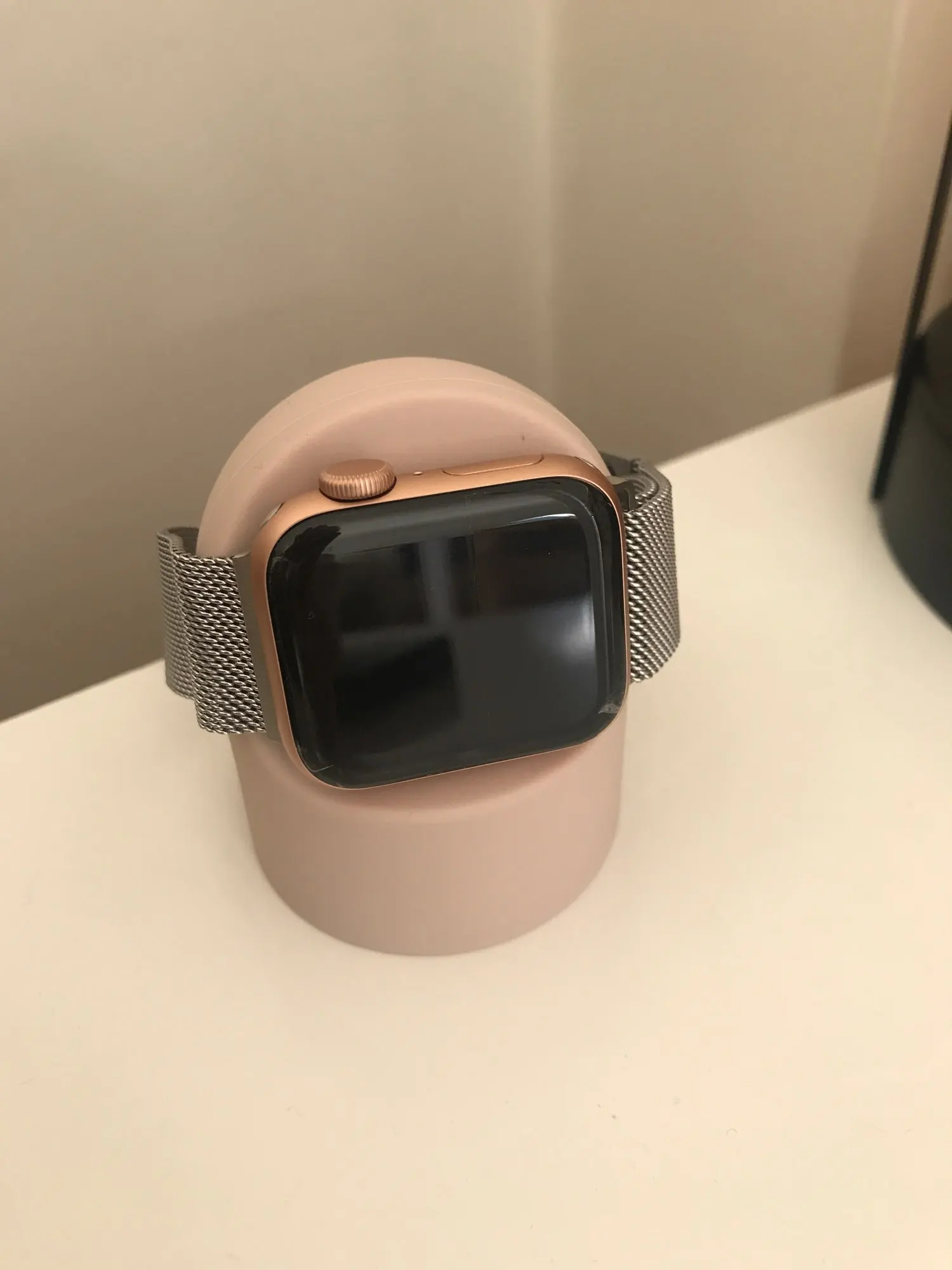 Очень Классная подставка для часов. До этого пользовались докстанцией. Теперь эта малышка ее заменила. Тяжёленькая, без запаха, приятная на ощупь. Брали в двух цветах . Белый и серый. Очень круто смотрится, стильная. Удобно брать с собой. С продавцом не общалась. Пришло примерно дней за 10