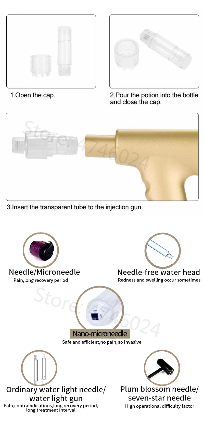 -- Спецификация: Тип изделия: пистолет для инъекций Штекер: Поддержка штепсельной вилки США, штепсельной вилки ЕС, штепсельной вилки Великобритании, штепсельной вилки Австралии, когда вы делаете заказ, сделайте примечание, мы отправим согласно вашему примечанию Напряжение: 100-240 В Область применения: сыворотка для литья под давлением Вес упаковки: 409 г Размер упаковки: 22x16x4 см/22,8x20,0x13,4 дюйма -Принцип работы: Наномикроигла изготовлена из монокристаллического кремниевого материала высокой чистоты, который выгравирован по нанотехнологии. Каждая маленькая игла на пластине эквивалентна одной тысячной части волос. Нано-микро-игла может открыть сотню кожных каналов в одно касание, открыть кожный слой, не повреждая кожу. Он безболезненный и неинвазивный. Помогает впитывать как можно скорее. -Инструкция: 1. Поместите иглу на водяной пистолет. 2. Нажмите и удерживайте кнопку питания в течение 3 секунд, включите/выключите для работы. (ложитесь для использования) 3. Красный свет (высокая скорость), желтый свет (средняя скорость) и зеленый свет (низкая скорость). -Функции: Иглы от нанонакипи могут сделать Антивозрастные продукты погружены в глубину кожи, не повреждая кожу, без побочного эффекта, безопасны в использовании. Глубокое Пополнение и богатое питание, укрепляет кожу, чтобы впитать косметический продукт. Помогает уменьшить дефекты, морщины и следы. Иглы с нанонакидом повышают уровень коллагена, чтобы создать новую и молодую кожу, поэтому осуществляем омоложение кожи. Нано-чипсет для инъекций подходит для кожи и 100% безопасен, который не имеет побочного эффекта после операции. Одна инъекционная обработка = 1 тысяча раз маска для лица -- Преимущество инъекции без игл: 1. Инъекция без игл уход за кожей = гиалуроновая кислота + много видов ухода за кожей. 2. Международные высококачественные импортные материалы для красоты, безопасность для вашей красоты. 3. Тонкая инъекция, быстрая и удобная. 4. Нехирургическое лечение, крошечные травматические, высокая безопасность -Шесть основных преимуществ нано-мезотерапевтического пистолета: 1. Рафинированный продукт, не КОРРОЗИОННЫЙ, без остатков металла, без чувствительности. 2. Как и медицинский косметический инструмент, безболезненный, неинвазивный, без кровотечения. 3. Эффективная проницаемость, открыть крошечные поры и повысить поглощение. 4. Цель в корне проблемы кожи, скорость поглощения составляет 12 раз от нормального косметического продукта. 5. Все тело может сделать лечение. 6. Восстановление немедленно, не повлияет на вашу нормальную жизнь и работу. -Вышивка крестом пакет включает в себя: 1 Мезотерапия пистолет 1 Игла 1 Инструкция 1 адаптер • Usb-кабель-1 шт.