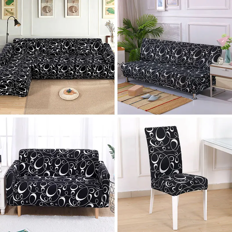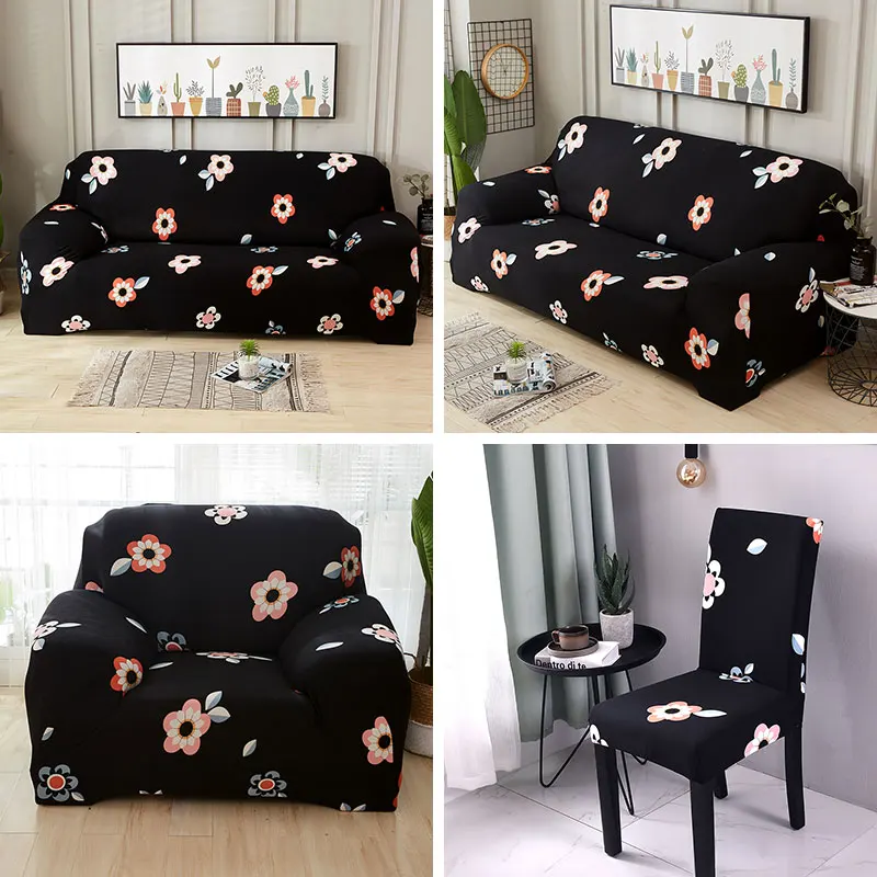Все черные чехлы для стульев с цветочным принтом Моющиеся Съемные б...