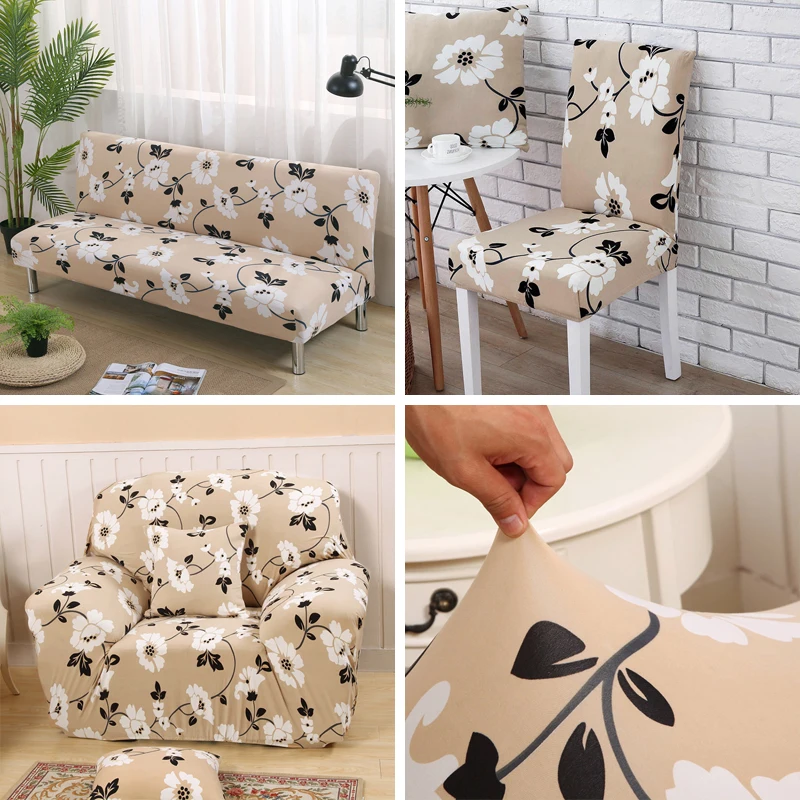 Эластичные чехлы из спандекса с цветочным принтом, эластичные съемн...