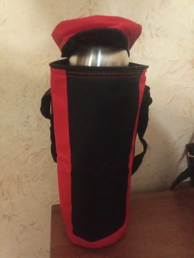 Удобная сумка для термоса. На мой 1.2 литра села как влитая и сверху еще 7 см места осталось. Как раз для баночки с кофе и сахаром.