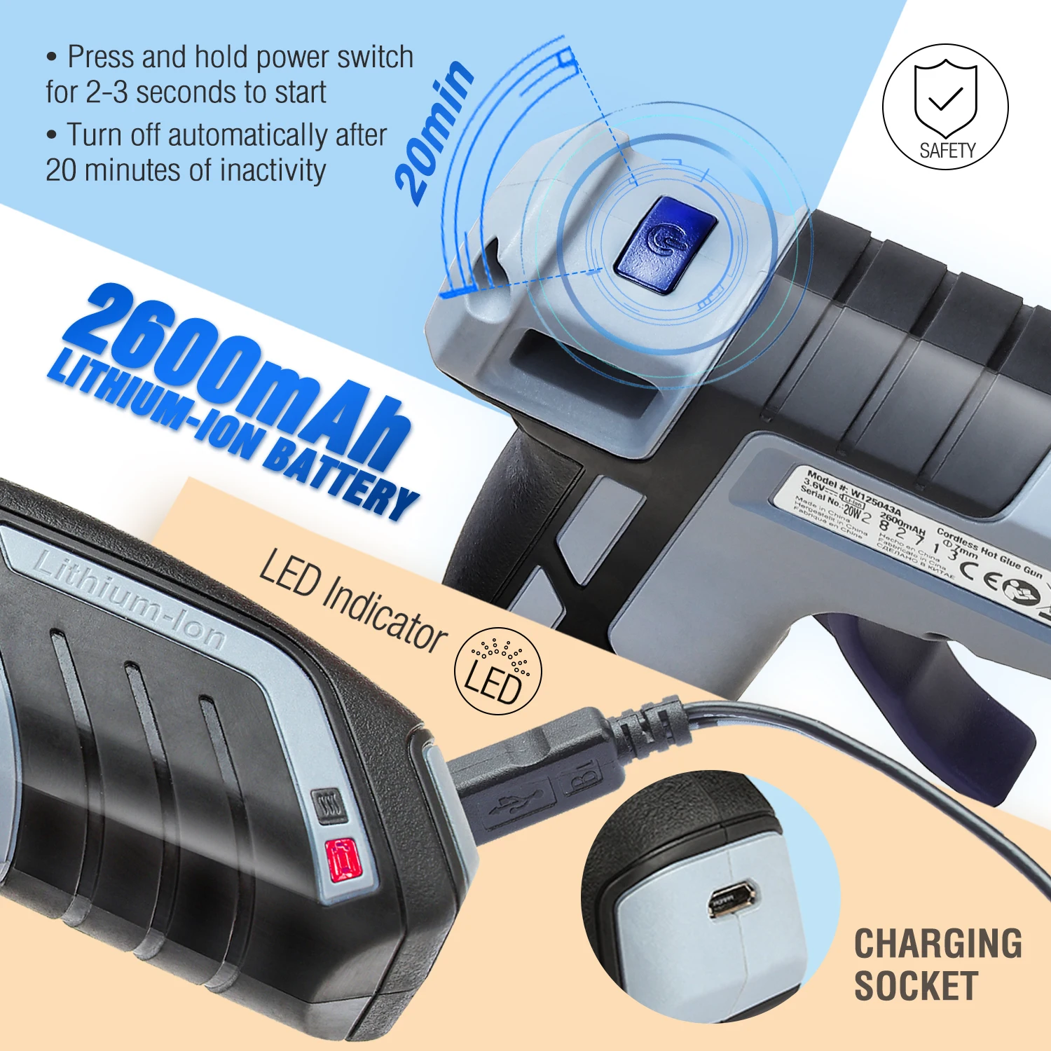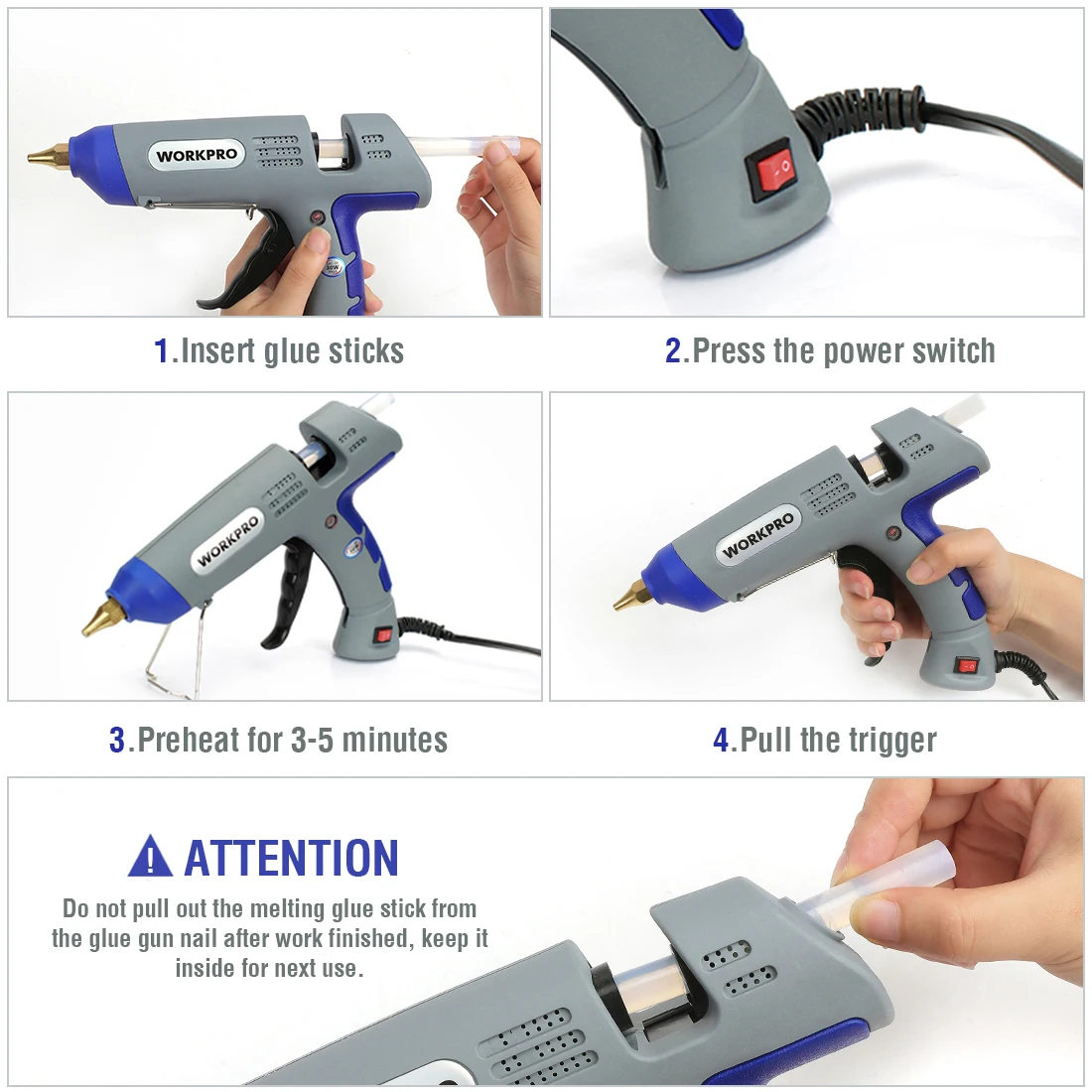 Клеевой пистолет WORKPRO 30 Вт, инструменты сделай сам, высокотемпературный термоплавкий клеевой пистолет с 20шт клеевыми стержнями премиум-класса для рукоделия, использования в рождественских украшениях