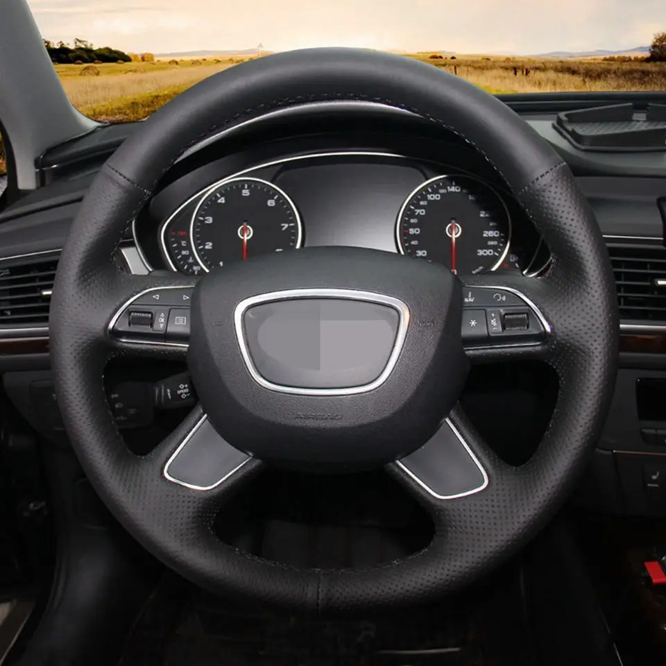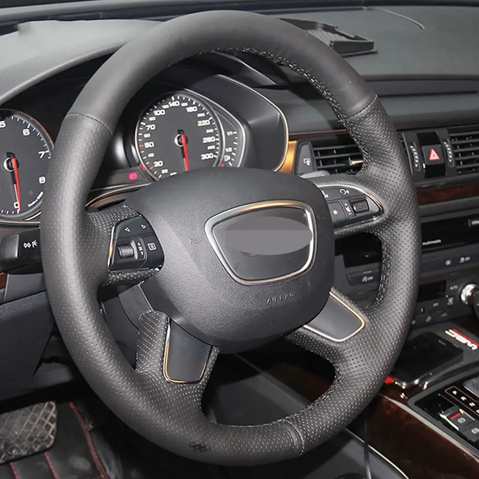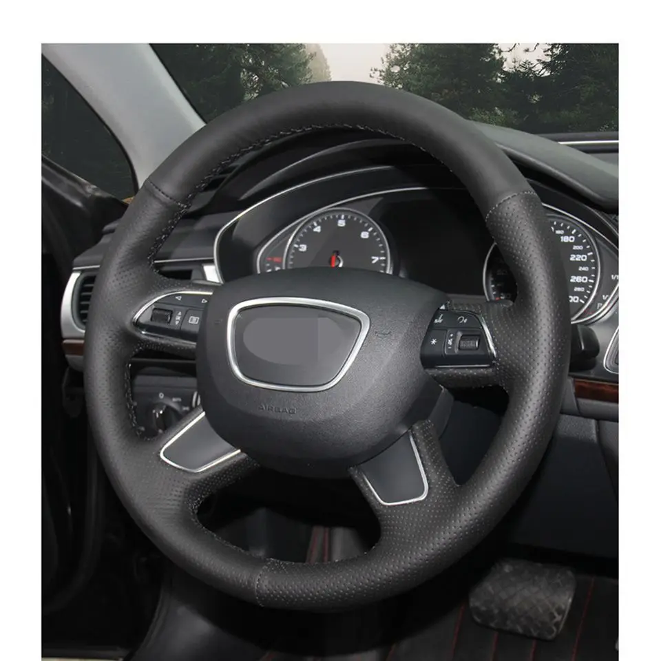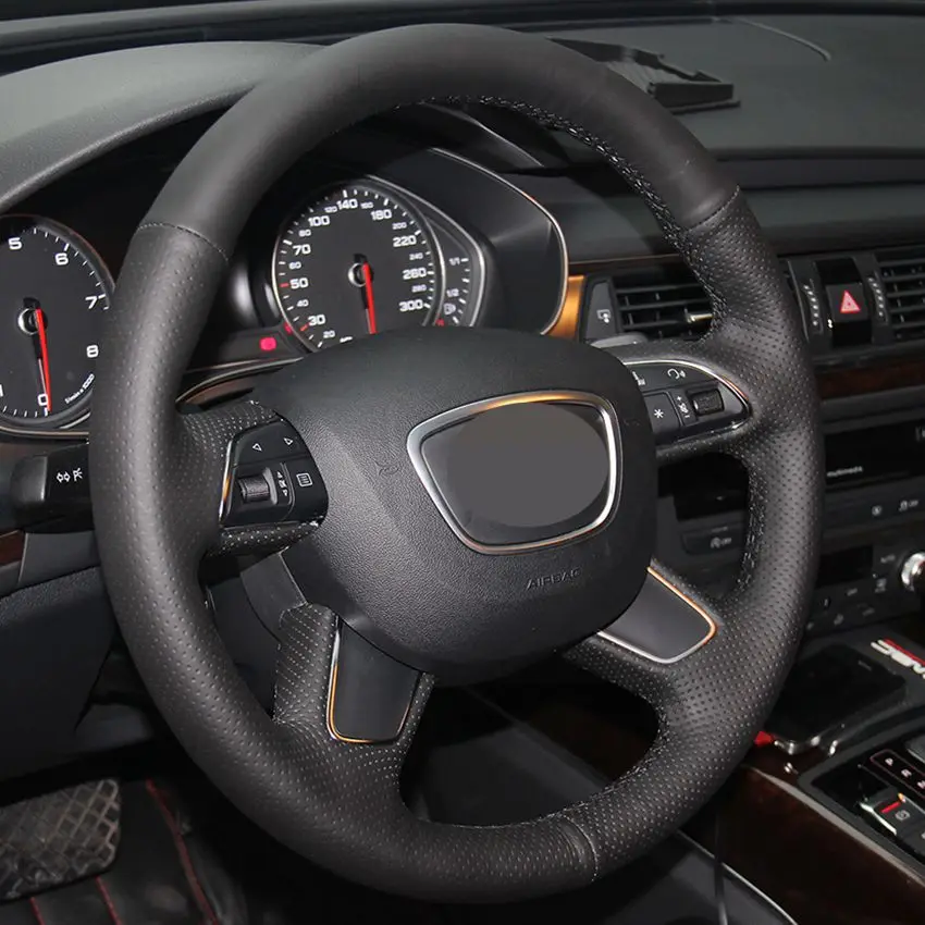 Черный чехол рулевого колеса автомобиля из искусственной кожи для Audi A4 (B8) A6 (C7) A7 A8 A8 L Allroad Q5 2013-2017 Q7