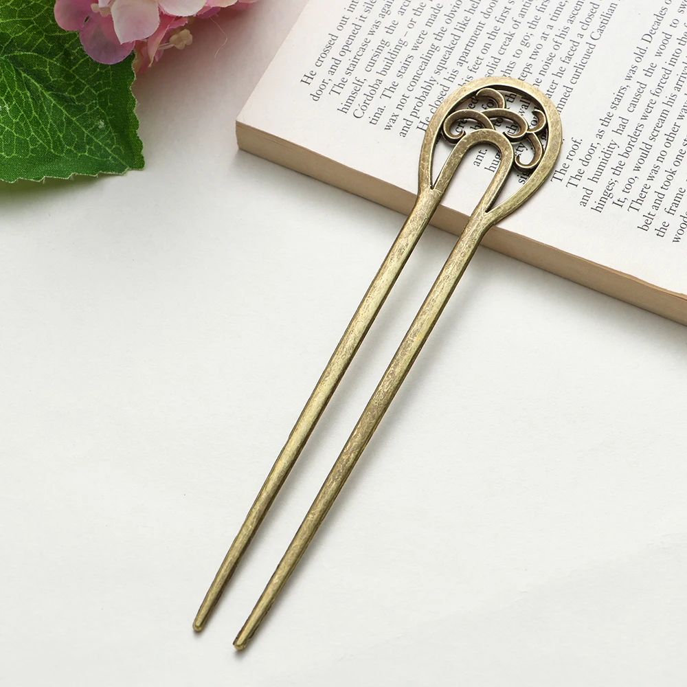 Металлическая U-образная заколка для волос в стиле ретро, модная шпилька для волос с двойными волнистыми цветами, аксессуары для волос, инструменты для укладки