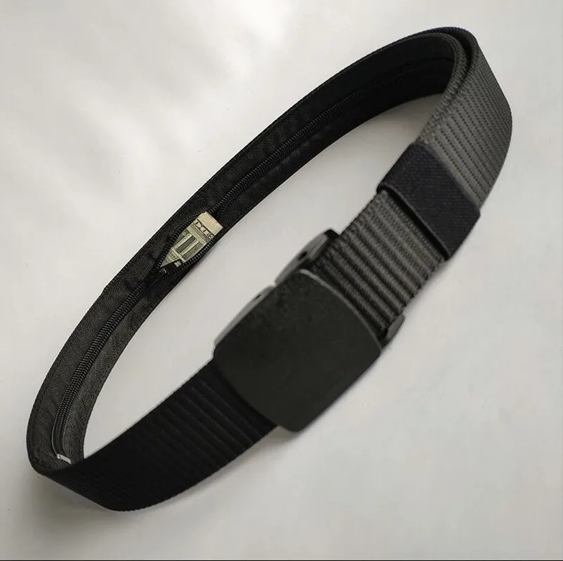 Ремень с пластиковой пряжкой для мужчин и женщин, нейлоновый холщовый кошелек с ремнем на молнии, скрытый защитный Тактический держатель