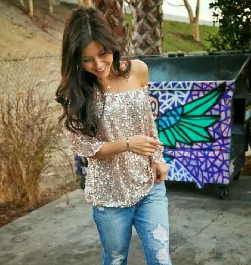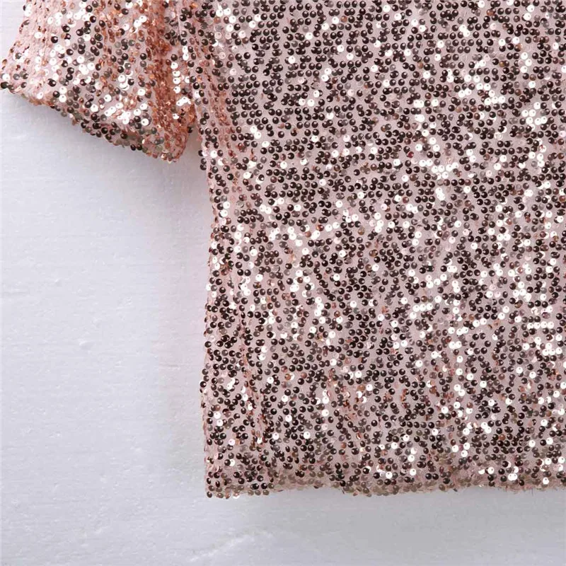 Женские футболки, Новое поступление, мода 2019, Весенняя сексуальная стильная блестящая женская рубашка с коротким рукавом и блестками, Золотая формальная футболка