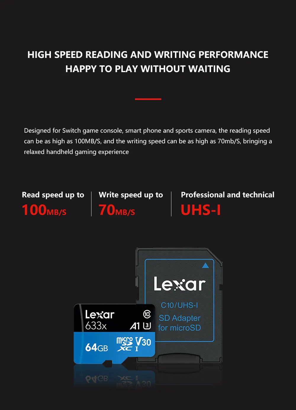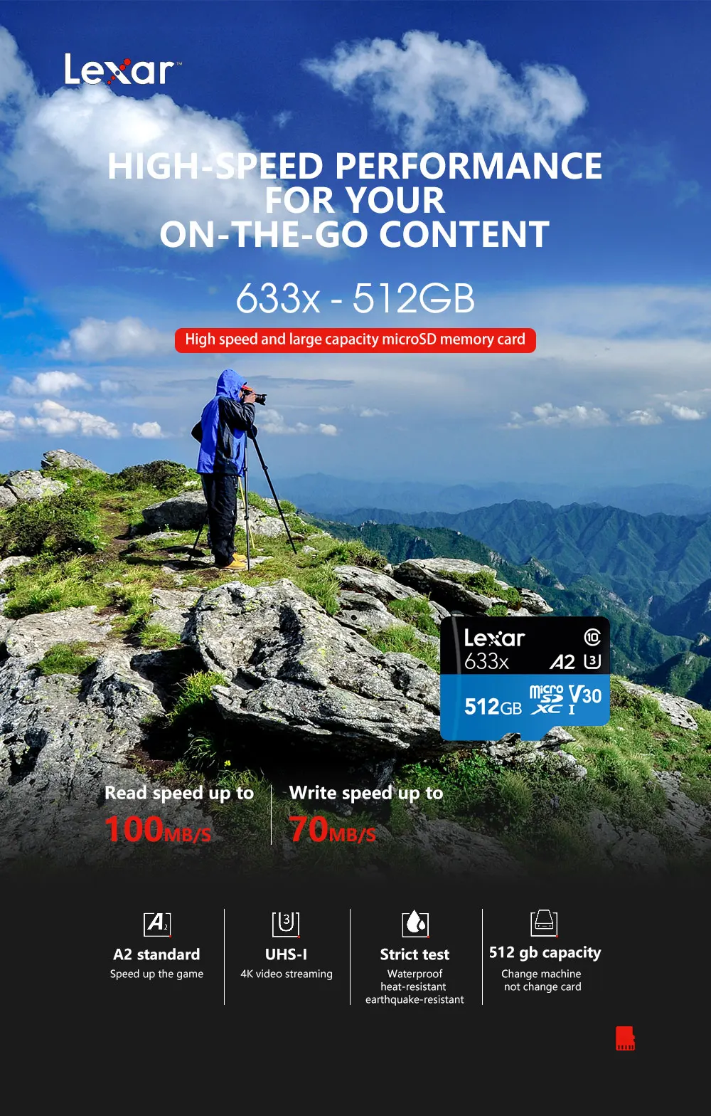 Lexar высокая производительность 633x высокая скорость MicroSD 16 Гб microSDHC карта UHS-I Micro SDHC 32 Гб класс 10 64 Гб microSDXC Micro SDXC U1 TF карта памяти 1080p full-HD 3D 4K видео для квадрокоптера Дрон антенна камера планшет Gopro Hero спортивная видеокамера смартфон мобильный телефон Mp3 водительский рекордер камера Мобильное устройство