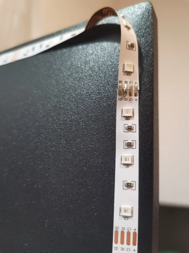 Светодиоды не RGB. Есть отдельные светодиоды для каждого цвета: красный, зеленый, синий. В этом конкретном случае я хотел бы предложить использовать полосу таким образом, чтобы вы не могли непосредственно увидеть ее. Идеально подходит для подсветки.