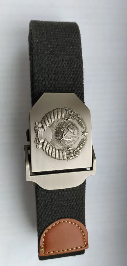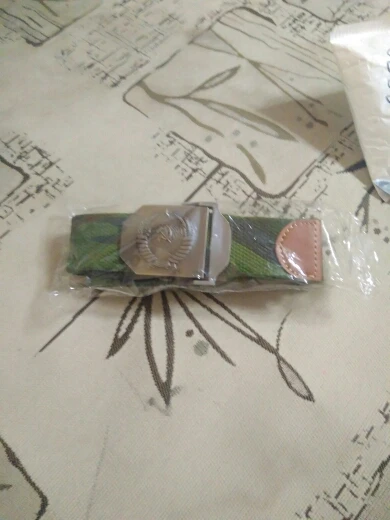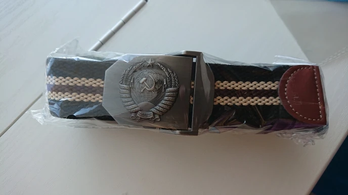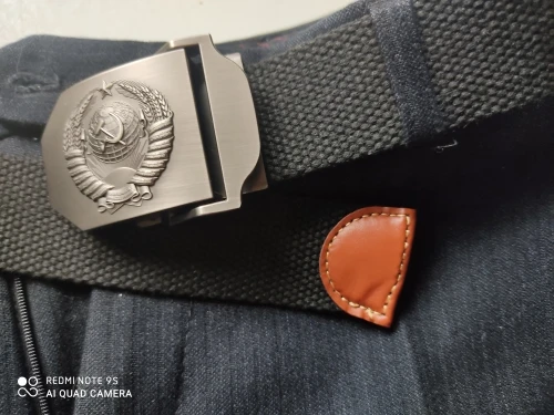 Ремень соответствует описанию так же как и цветом и длинной ремня в моем заказе.Выглядит добротным качественным как бляха хотя в идеале не мешало бы увеличить немного ее в размерах ну тут уж подогнано под братско-китайский минитюаризм и сам ремень точнее материал ремешка.Длина около 130 см (как оказалось это для телепузиков)лично мне и 110 или 100 хватило бы как оказалось.Расцветка камуфляжа только на одной стороне ремня вторая однотонная.Герб СССР выполнен качественно детализация отличная(надписи на союзных языках читаются отлично).Доставка новой почты около 4х недель(задержалась почему то доставка привык шо за 2 около 3х недель).Так шо можно брать товарищи.Продавцу магазину 5 звезд