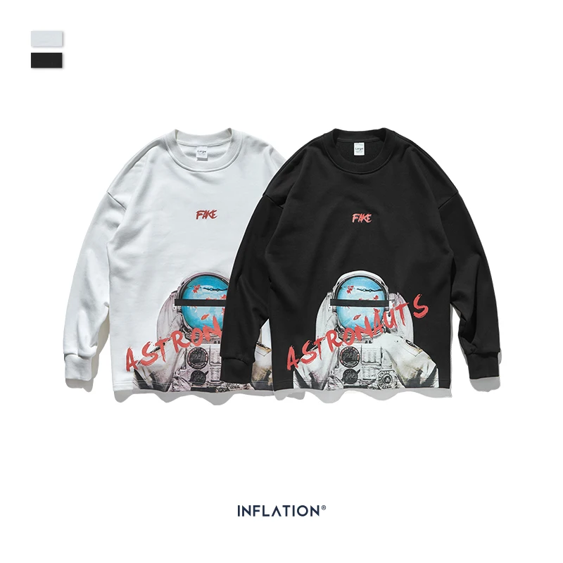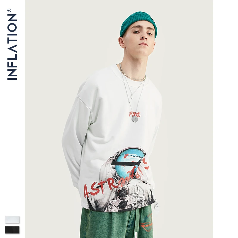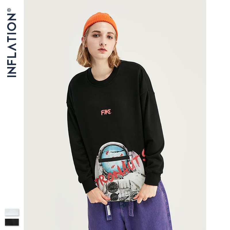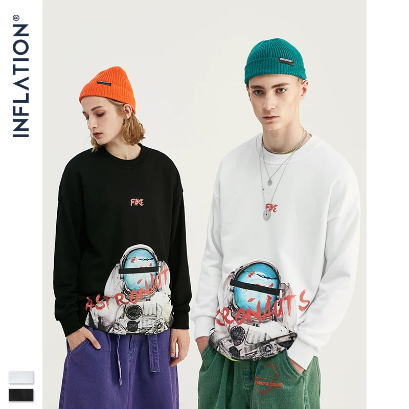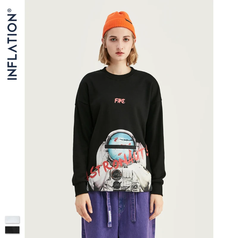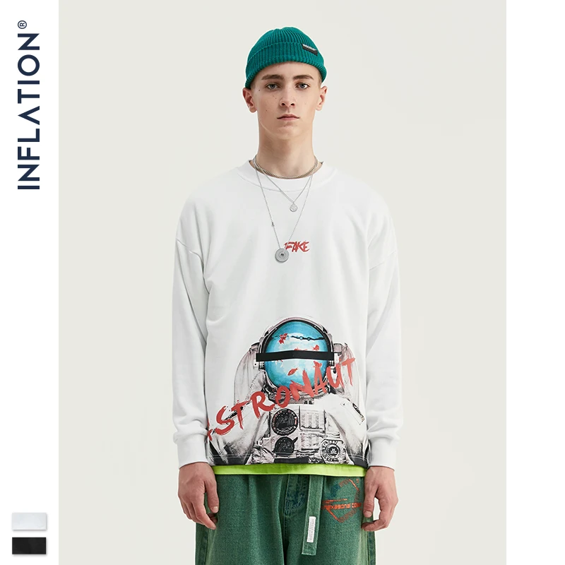 Мужская Флисовая Толстовка INFLATION, черно-белая Свободная Толстовка космонавта с принтом космонавта, уличная одежда, 9621 Вт