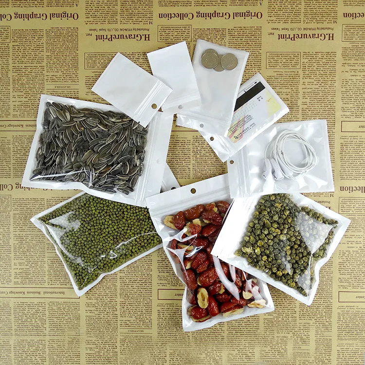 Белаяпрозрачная пластиковая упаковка для розничной упаковки, 100 шт., полиэтиленовый пакет с застежкой-молнией, сумка для хранения с отверстием для подвешивания