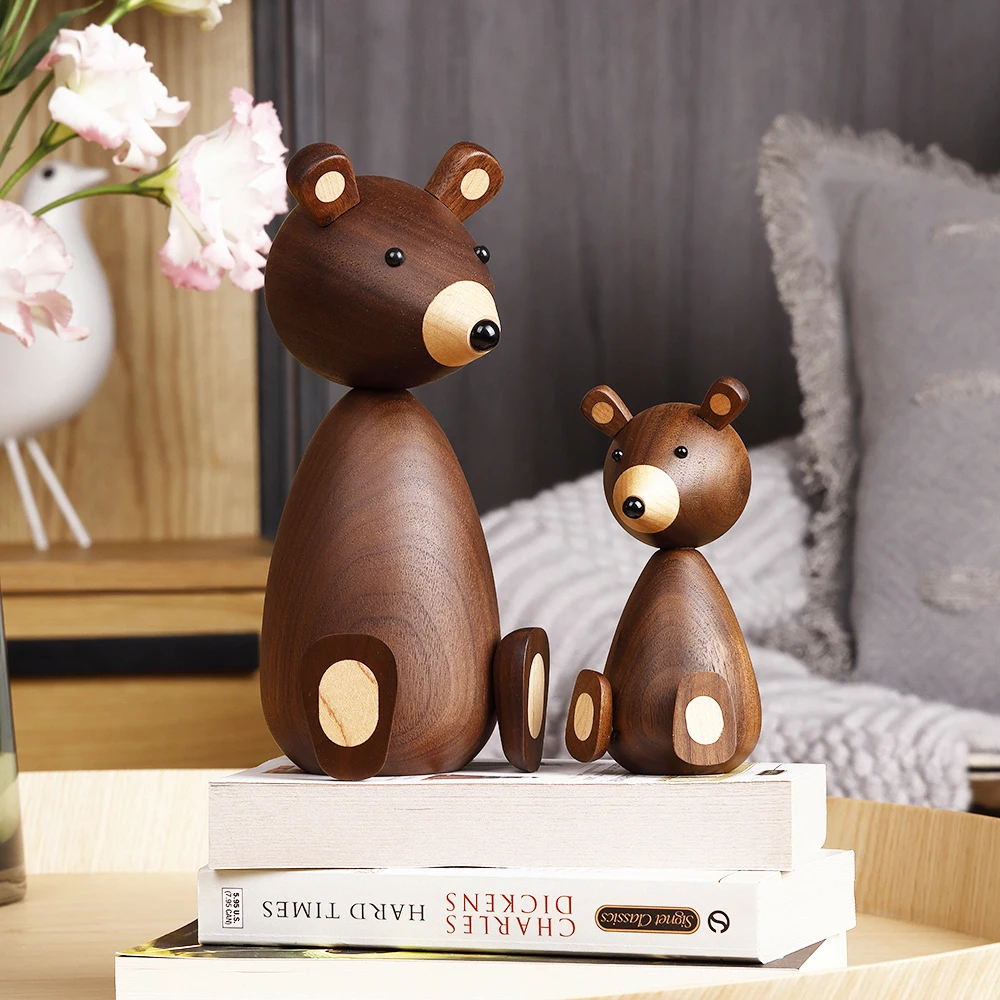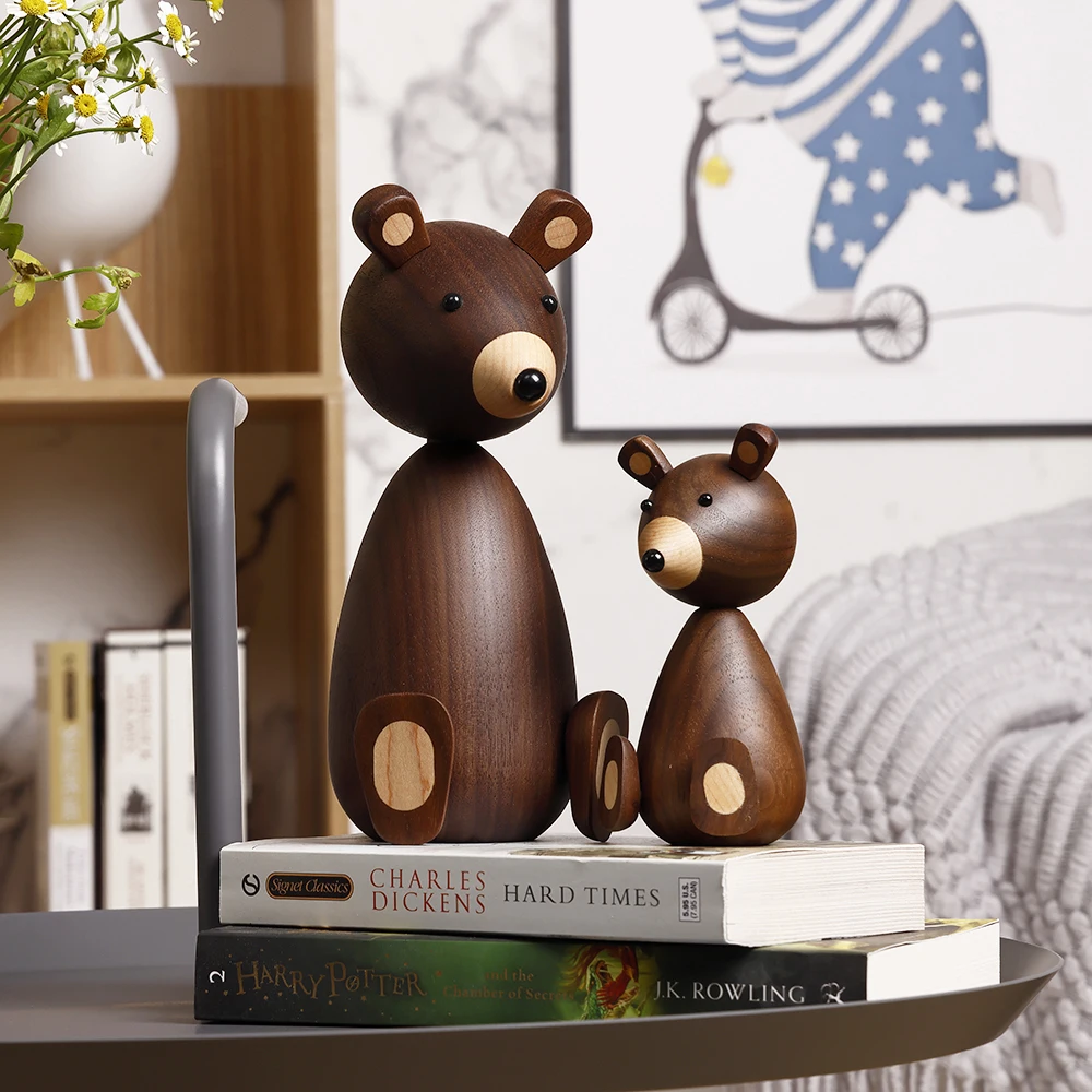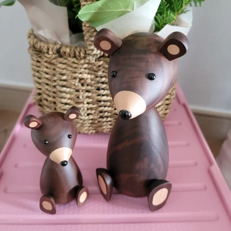 Рождественский подарок, маленький медвежонок в скандинавском стиле, винтажные аксессуары для украшения дома, фигурка из орехового дерева, милые детские игрушки