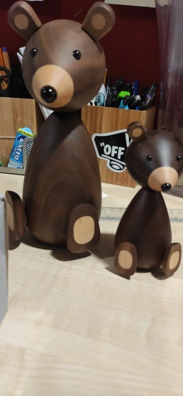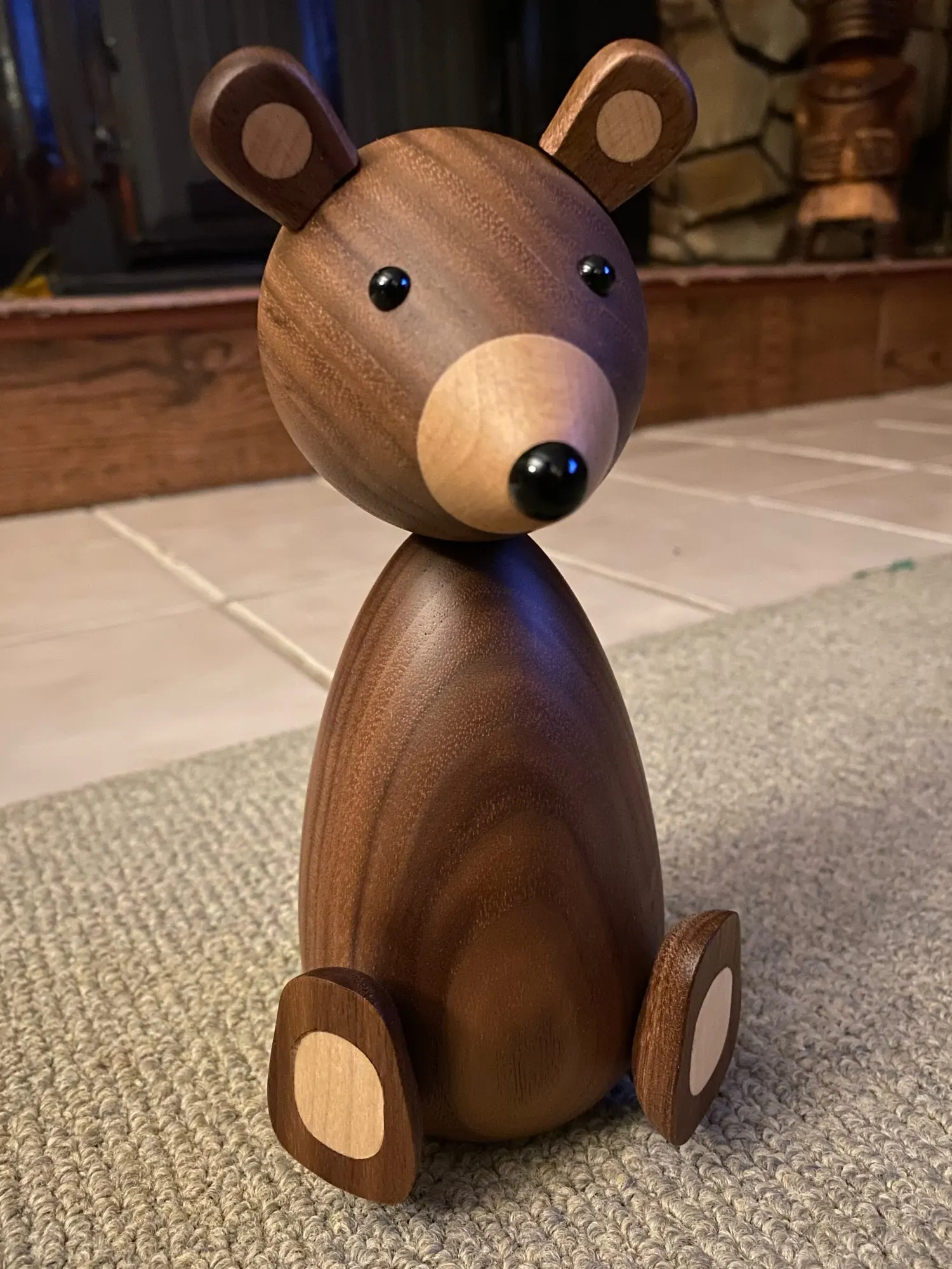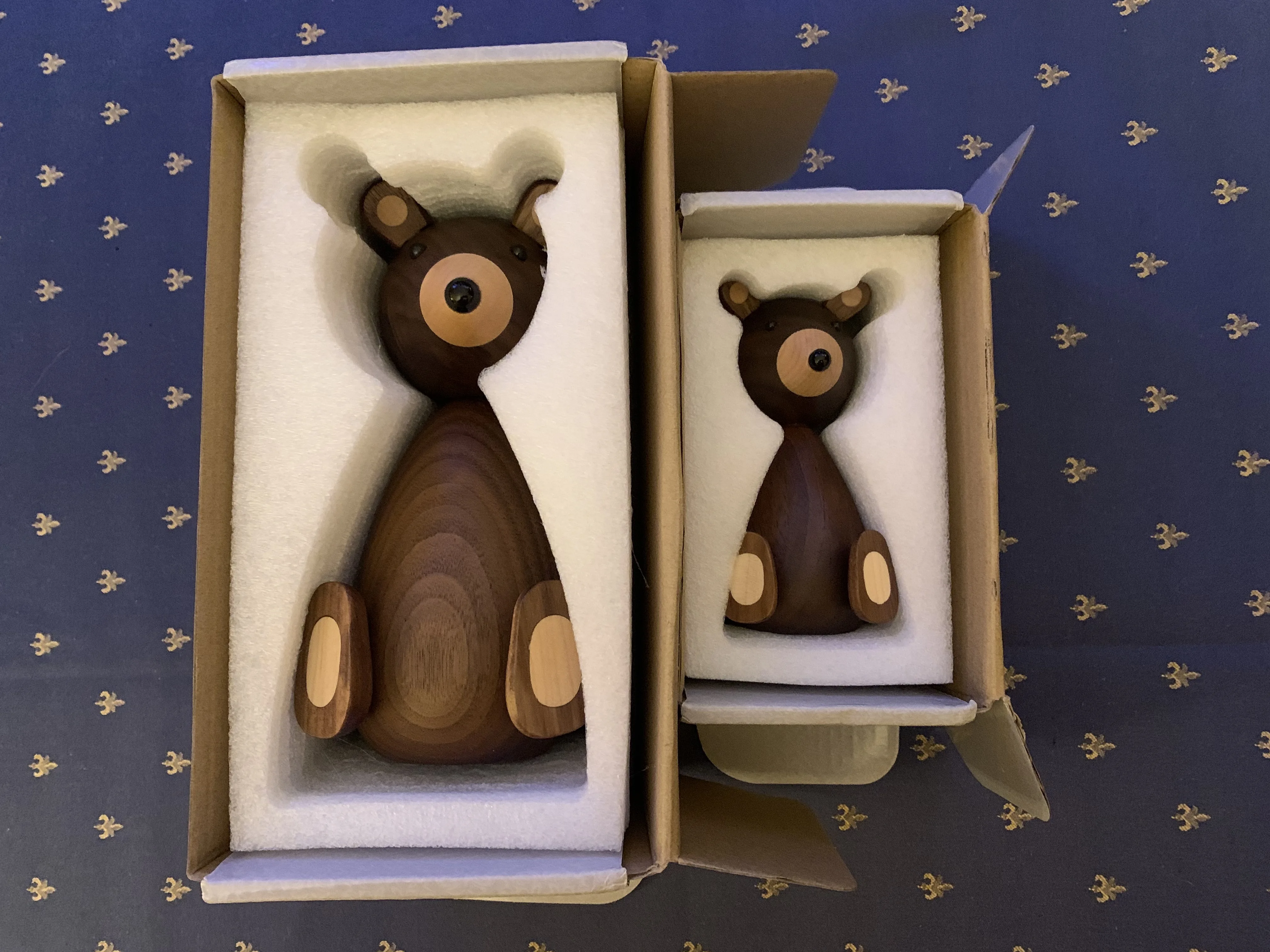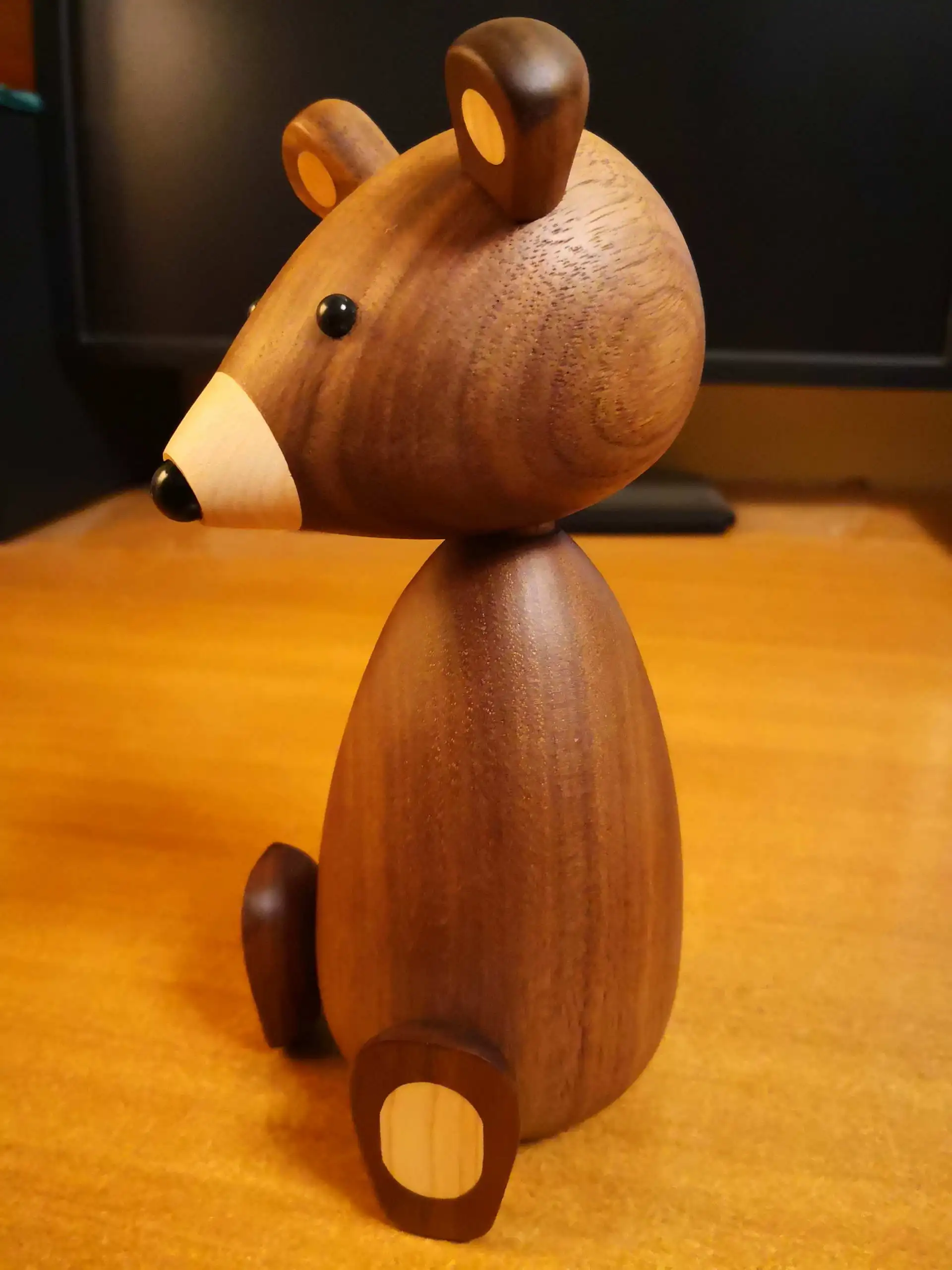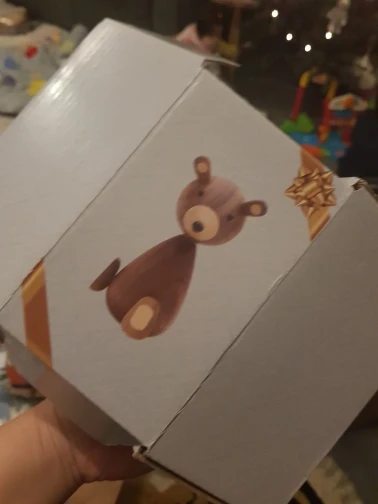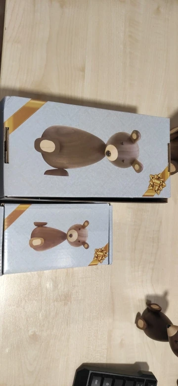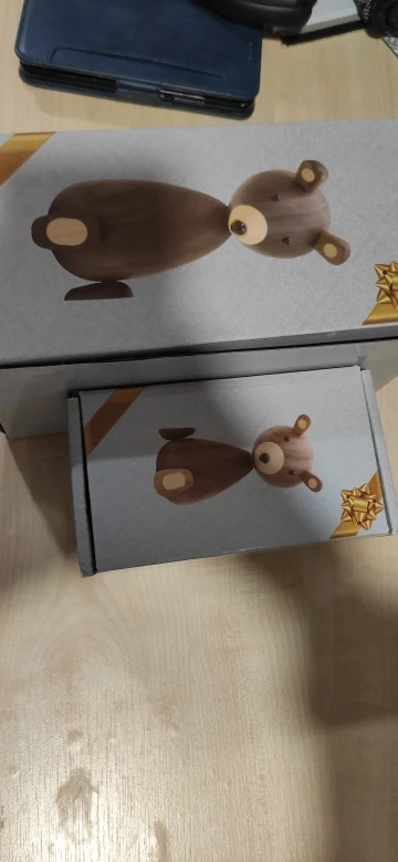 Игрушка пришла из Китая на почту уже через неделю после заказа, ну просто рекордсмен. Мишка довольно увесистый. Качество изготовления, в частности обработки дерева идеальное, комбинация разных пород дерева, отличная шлифовка и покрытие. Как можно увидеть на фото, голова мишки вращается, вообще она изначально приклеена, но совсем чуть чуть. Глаза и нос пластиковые. Следов клея снаружи нет. Мне немножко не повезло, при получении я обнаружил отломившийся нос, пустяк конечно, не сложно приклеить. Я поговорил с продавцом, он на удивление оказался очень общительным и обещал мне прислать подарок чтобы сгладить это недоразумение. Упаковка мишки простая и прочная, уплотнитель из бумажной соломы плотно держит фигурку внутри коробки.