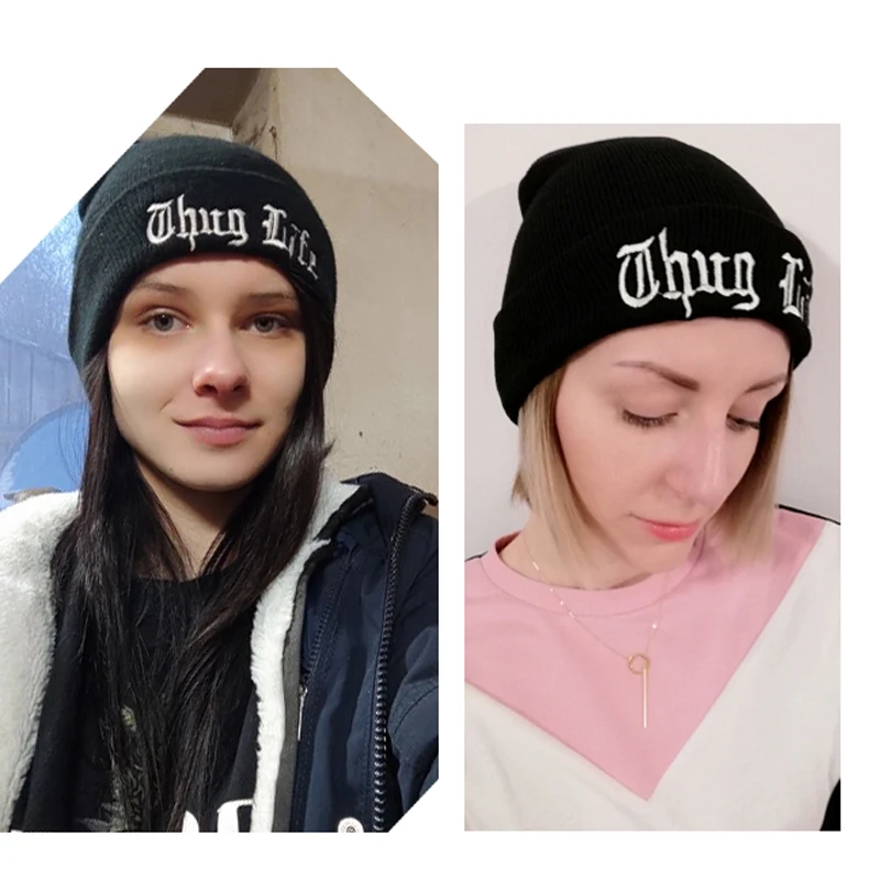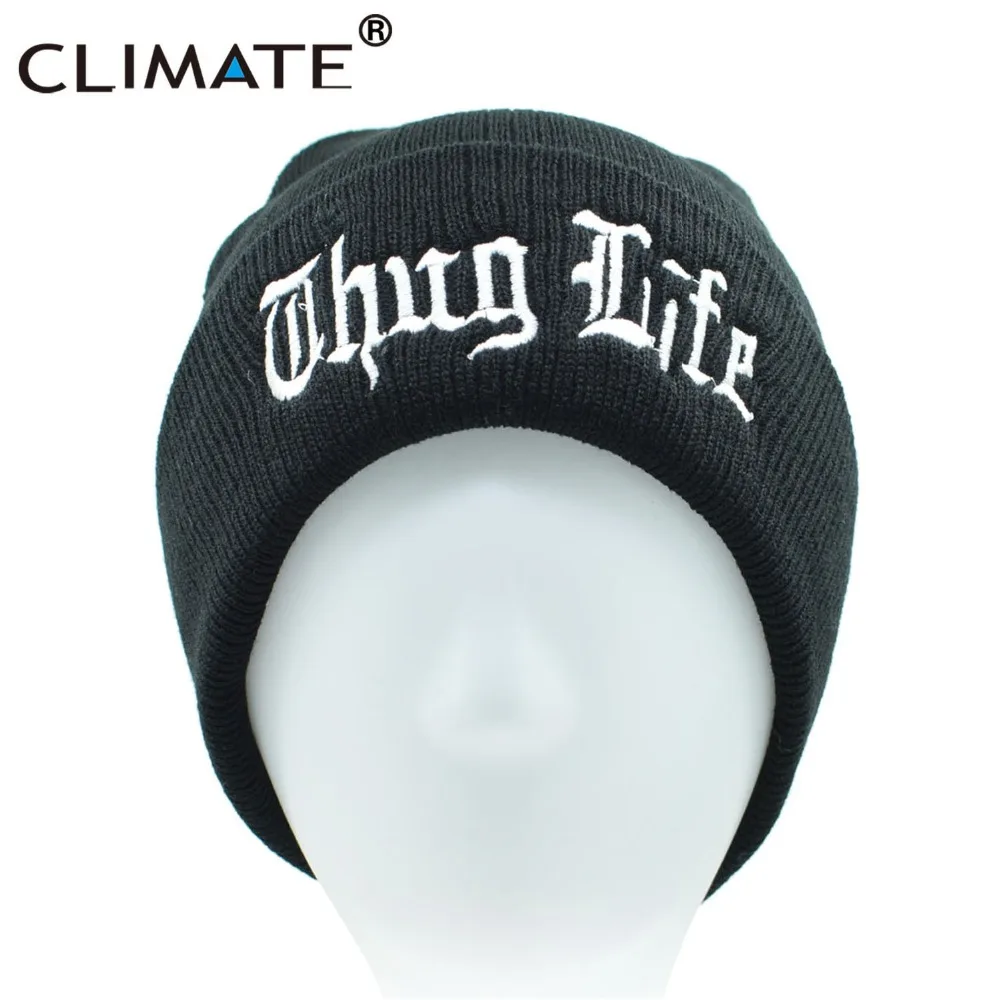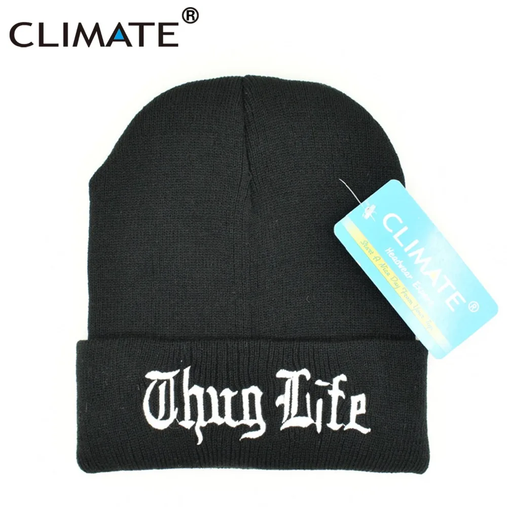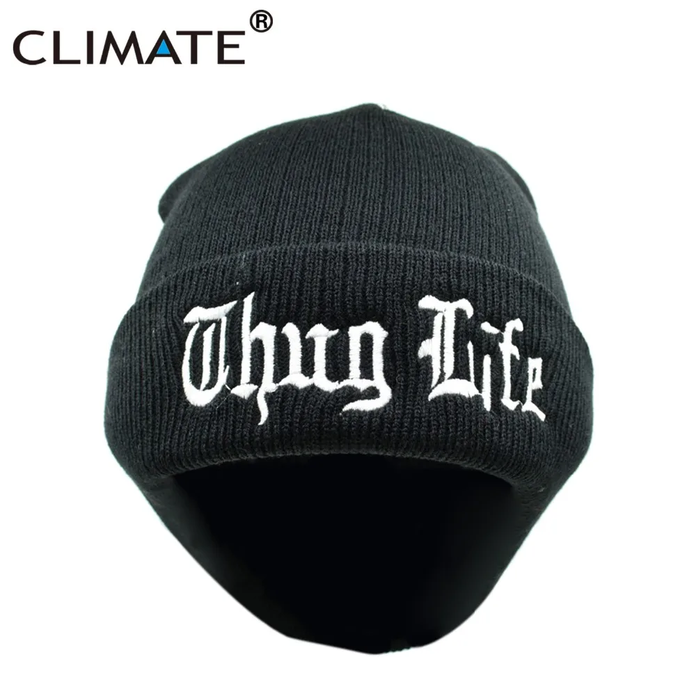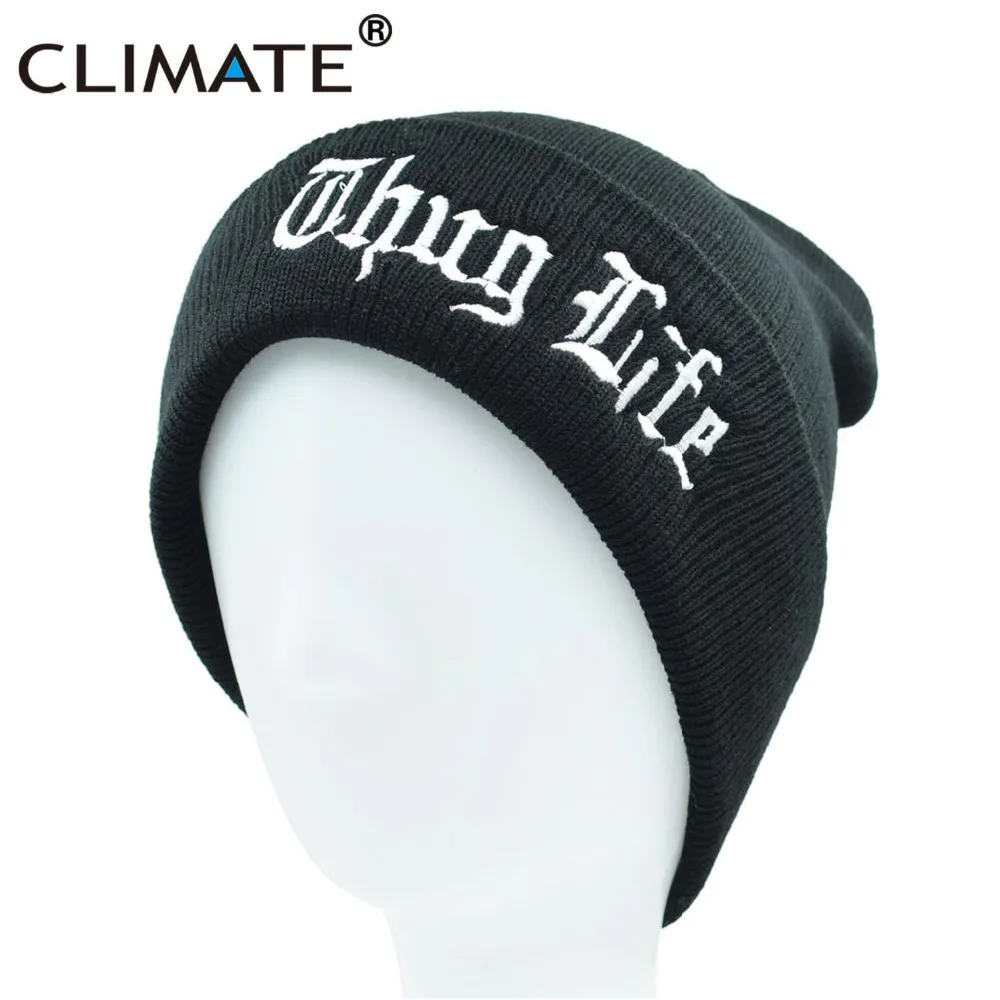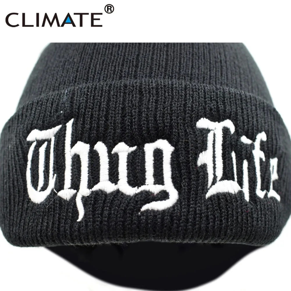 Шапка-бини CLIMATE THUG, черная, зимняя, теплая, вязаная, повседневная, крутая, черная, в стиле хип-хоп, теплая шапка для мужчин и женщин THUG