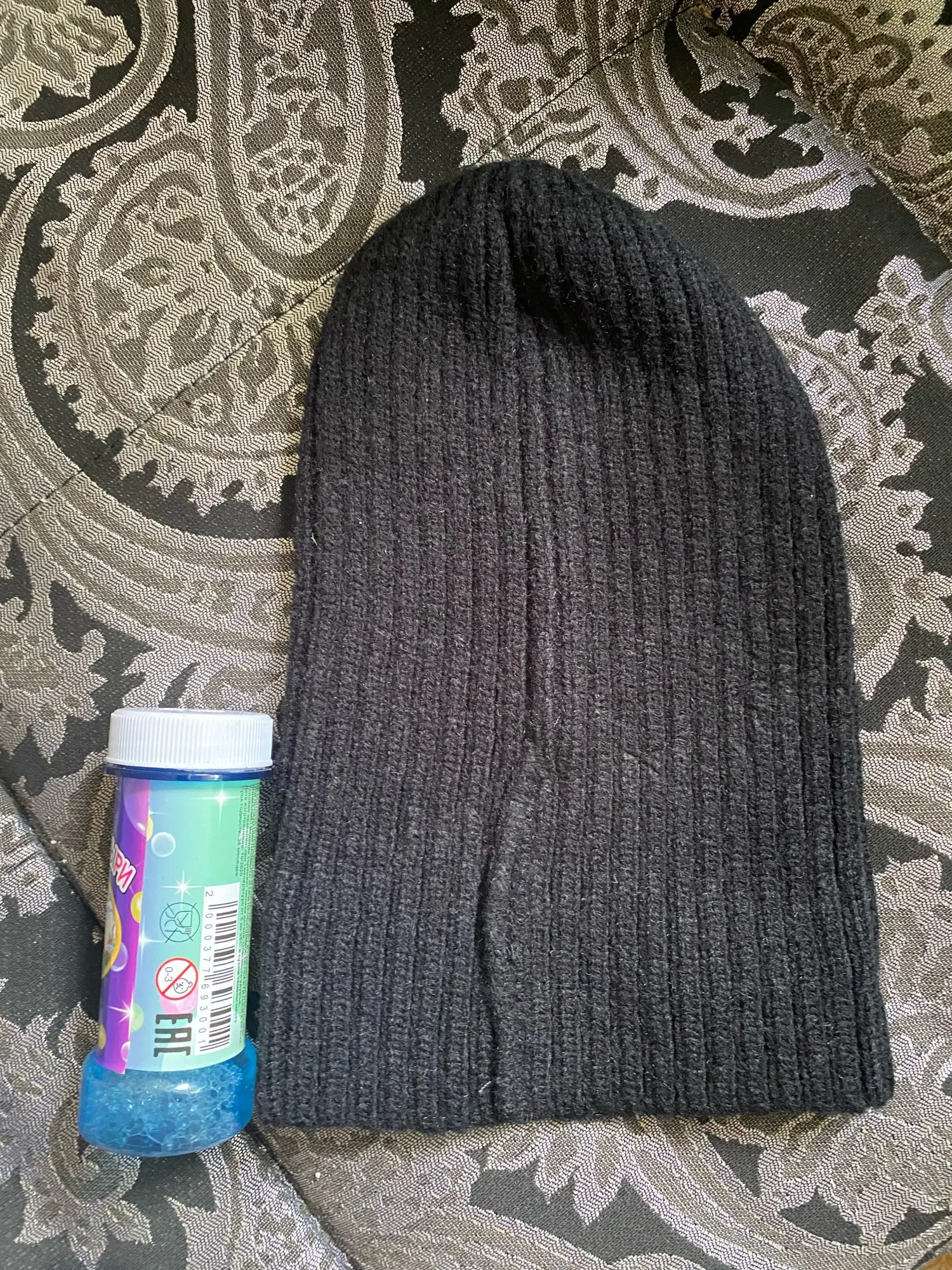 Поскольку здесь отсутствовали отзывы, то я решила написать свой. Шапкой я довольна, сшита хорошо, мягкая, она села хорошо, но ещё растянется. Цвет чёрный (но камера серит немного, не верьте камере телефона). Для масштаба положила мыльные пузыри. Самое главное, пришла в Тулу меньше чем за две недели с момента заказа! Я не ожидала. 5 из 5