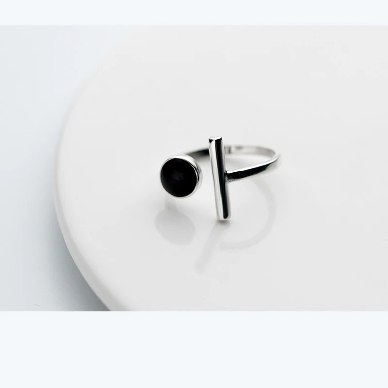 Женское кольцо в Корейском стиле, черное геометрическое открытое ре...