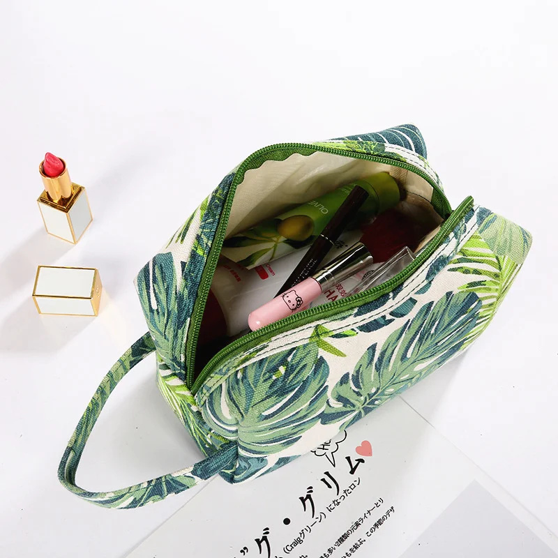 Женская косметичка PURDORED с зелеными листьями, креативная Вместительная дорожная Сумочка для косметики для женщин, 1 шт.
