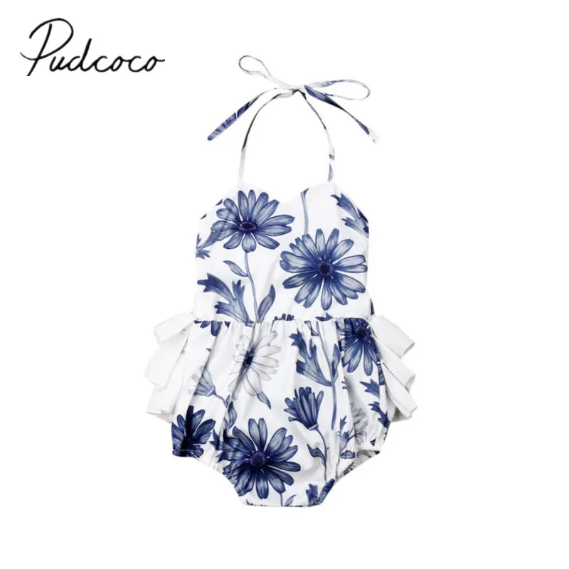 2019 Детская летняя одежда, Одежда для новорожденных девочек с цветочным рисунком, комбинезон на бретельках, боди с цветочным рисунком, Кружевной Костюм с оборками