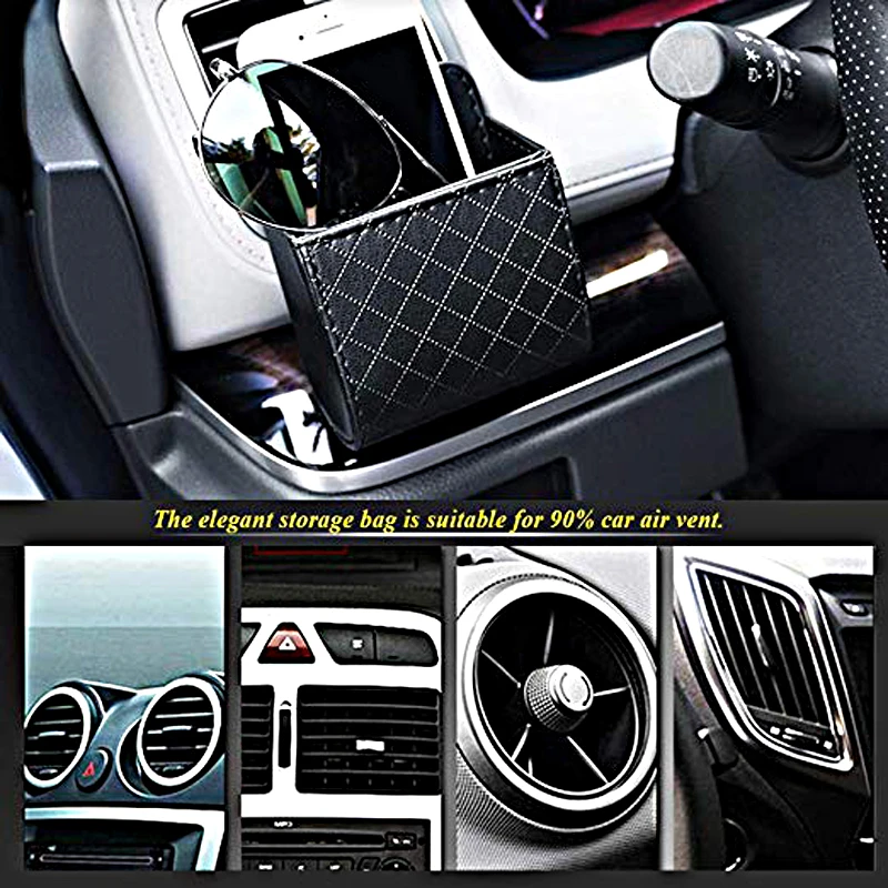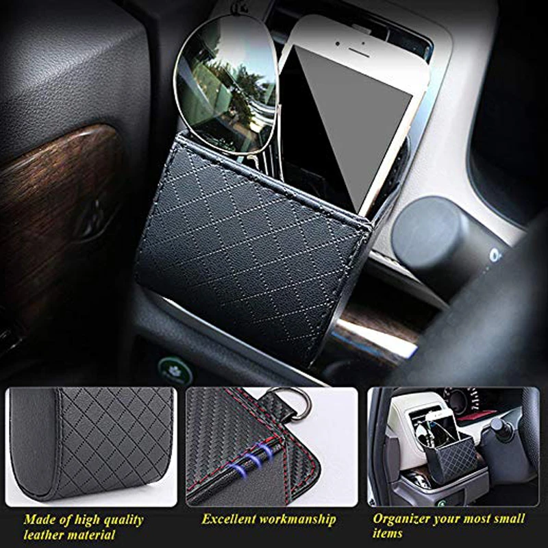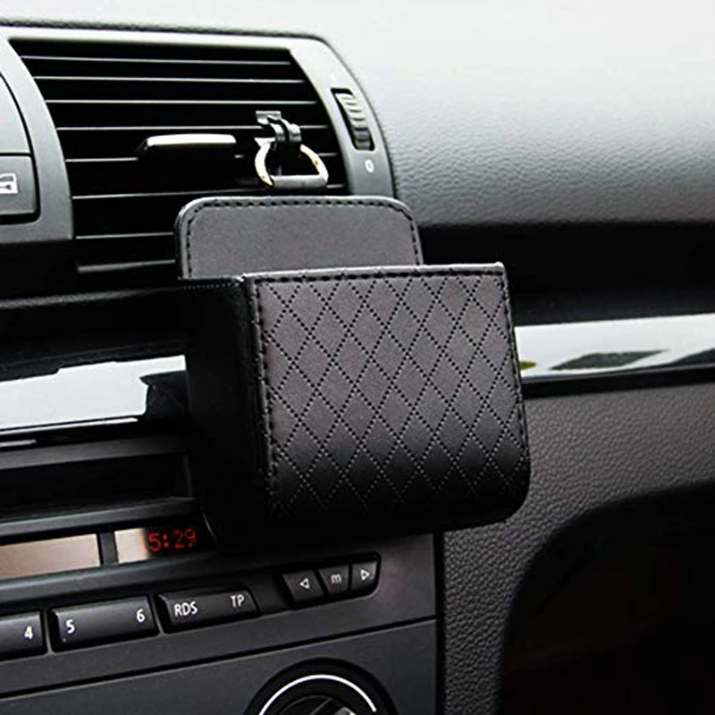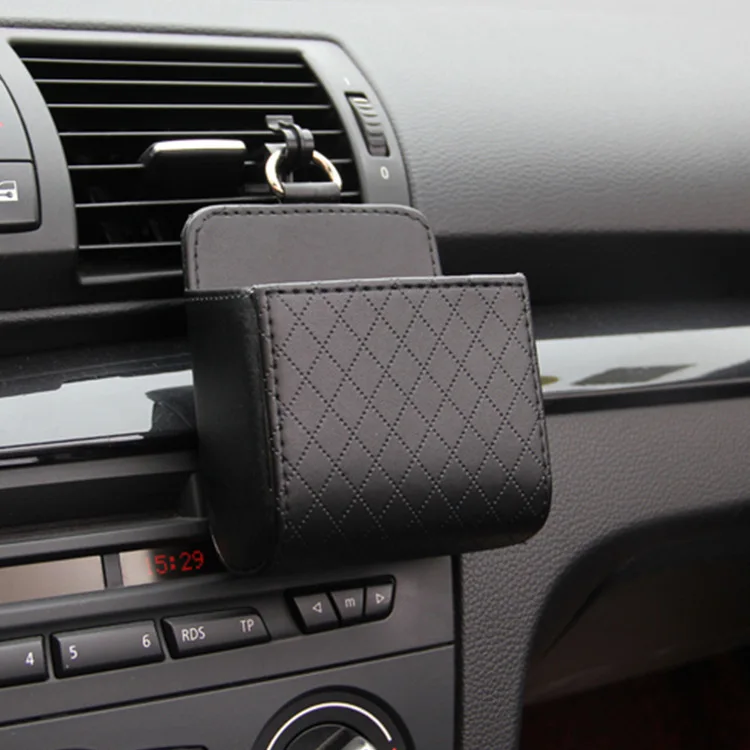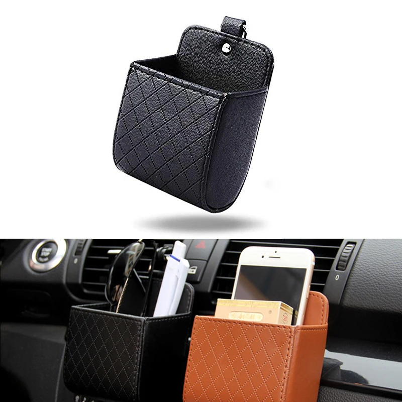 Универсальный автомобильный Органайзер на вентиляционное отверстие, коробка для хранения с крючком, автоматическое крепление, подвесной кожаный контейнер, карман для мелочи, держатель для телефона