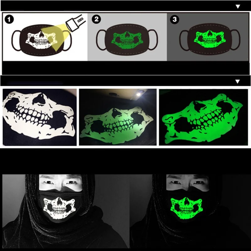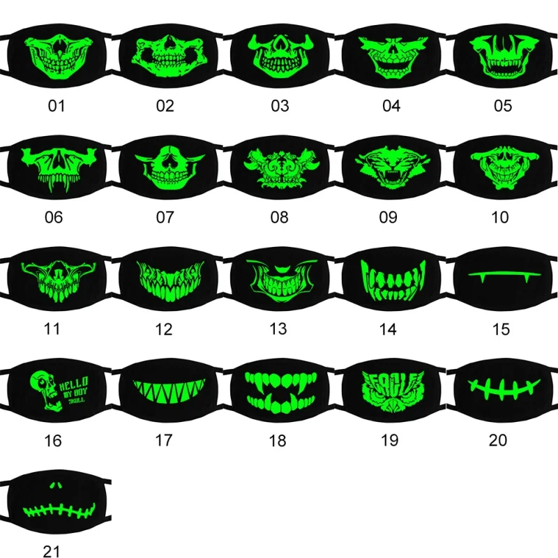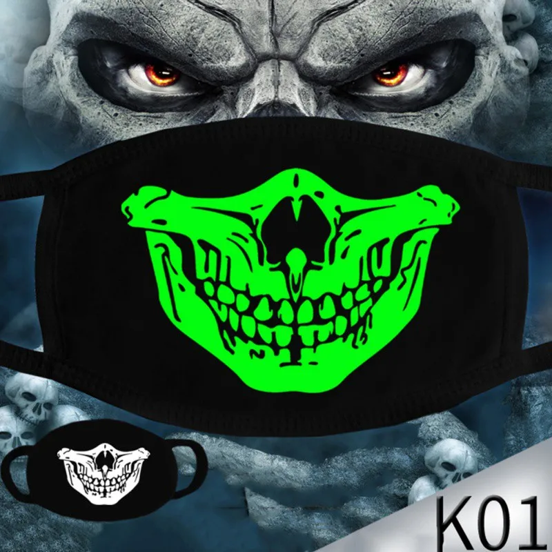 Пылезащитная светящаяся маска PM2.5 с ужасными скелетами, маска с рисунком черепа для взрослых, светящаяся в темноте для осени и зимы