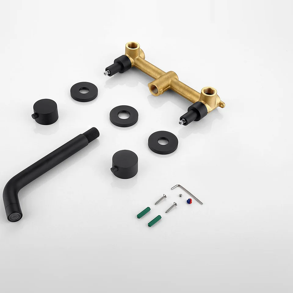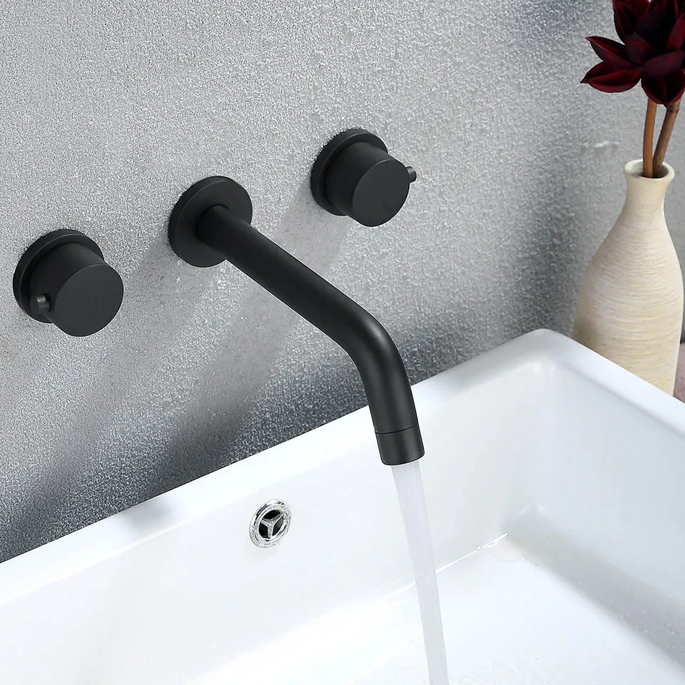 Смеситель для ванной комнаты с двойной ручкой, матовый черный настенный смеситель для горячей и холодной воды хромированный смеситель для раковины