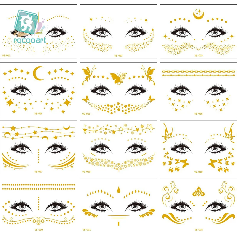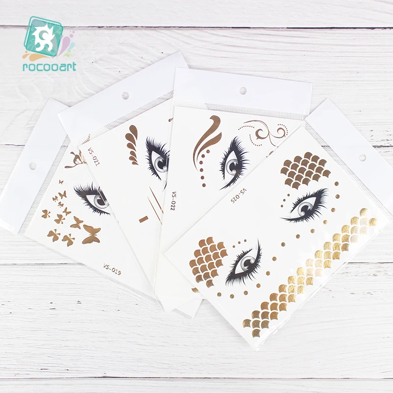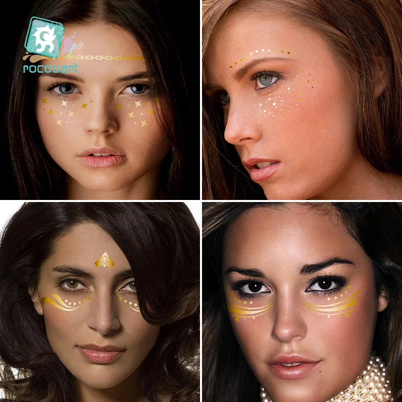 Водостойкая Татуировка Rocooart, металлическая, золотистая, серебристая, женская, модная, хна, для лица, веснушки, временная татуировка, карнавал, наклейка Вечерние
