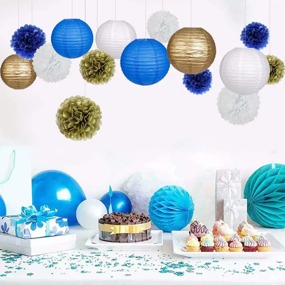 15 шт.компл. белого и синего цвета вечерние большой бумажный фонарь...