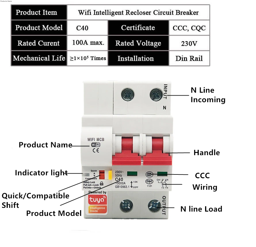 Автоматический выключатель Smart Life, 2P, поддержка Alexa, Google Home