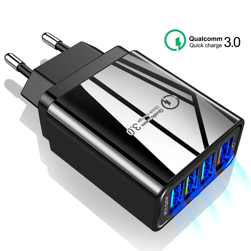 4 порта USB порт quick charge 3,0 USB зарядное устройство для iPhone X 8 EU US настенное зарядное устройство для быстрой зарядки для Samsung Note10 S9 S8 для Huawei P30