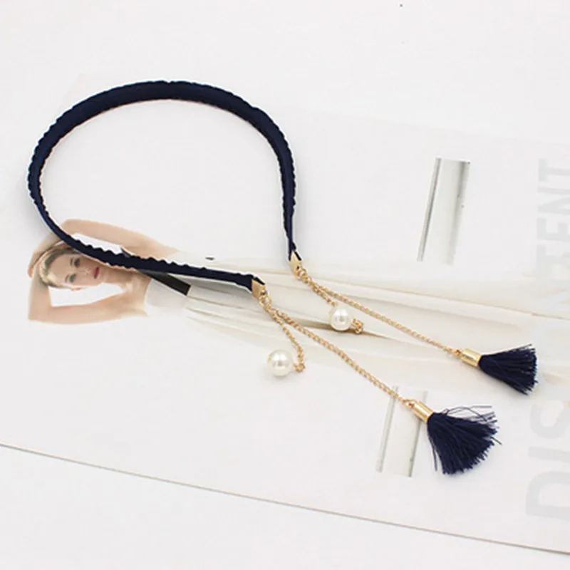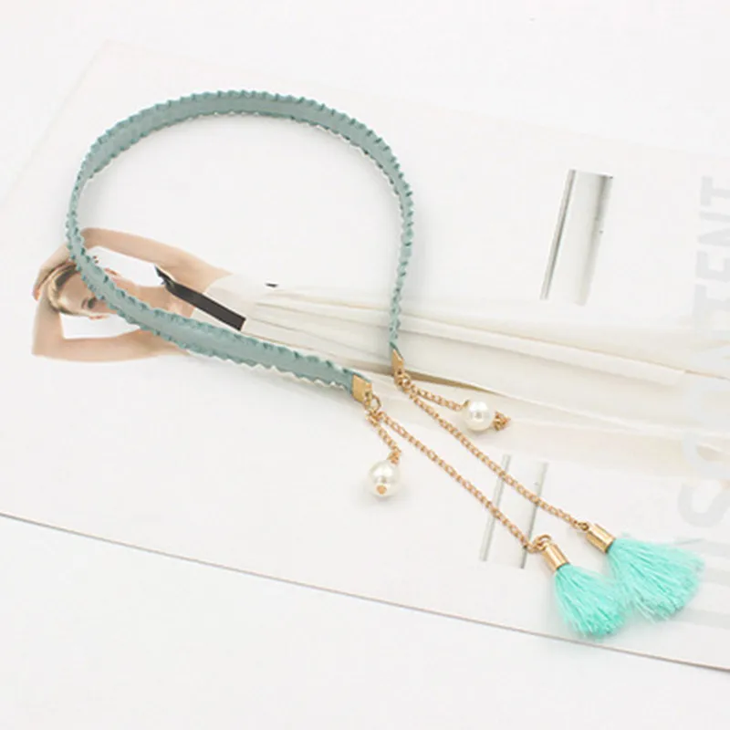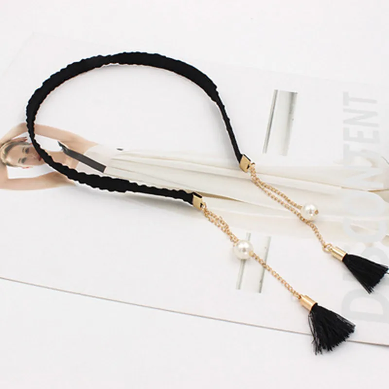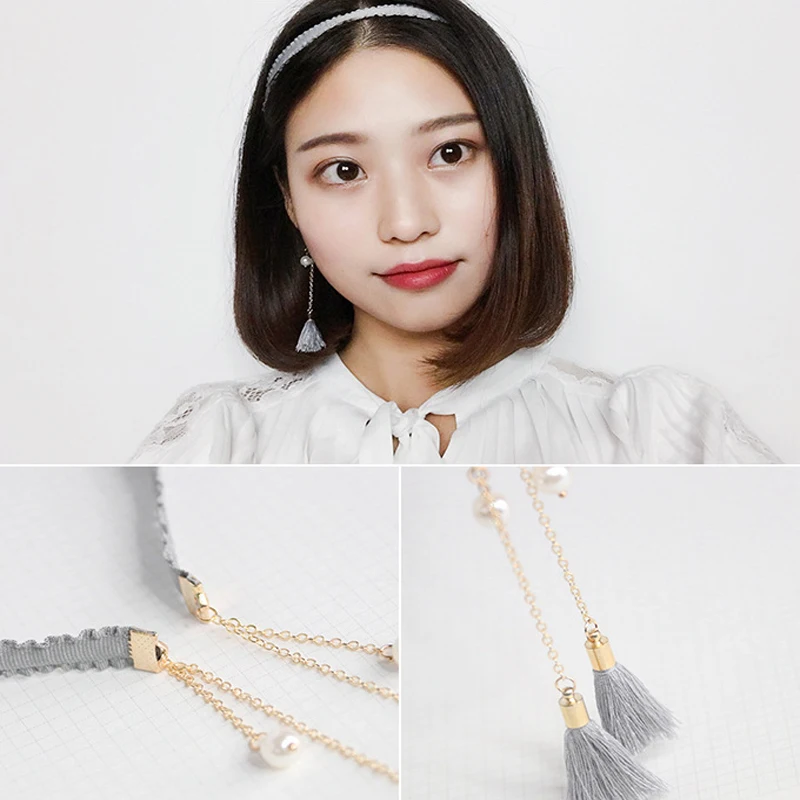 Ободок для волос с искусственными жемчужинами, простой ободок с бахромой, Модный милый ободок для волос, аксессуар на голову, 1 шт.
