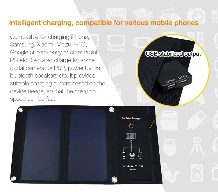 15 Вт двойное USB Солнечное зарядное устройство