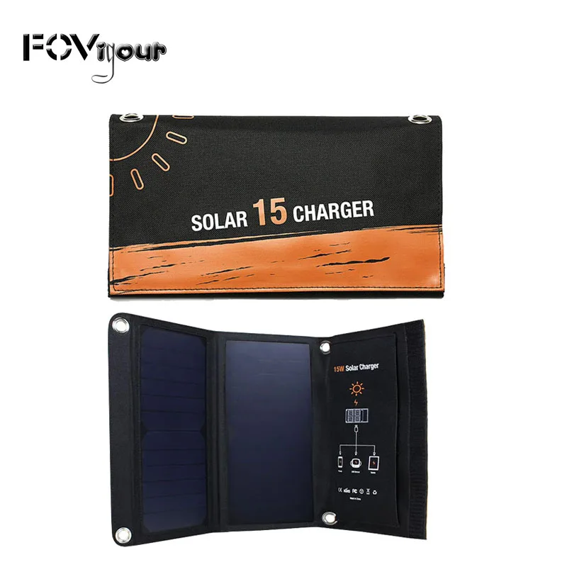 Fovigour портативный складной 15 Вт двойной USB Солнечное зарядное устройство с высокоэффективной солнечной панелью