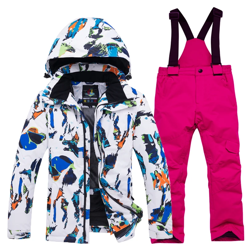 Куртка и штаны для мальчиков и девочек, для катания на сноуборде, водонепроницаемый, ветрозащитный, теплый, для зимы-30