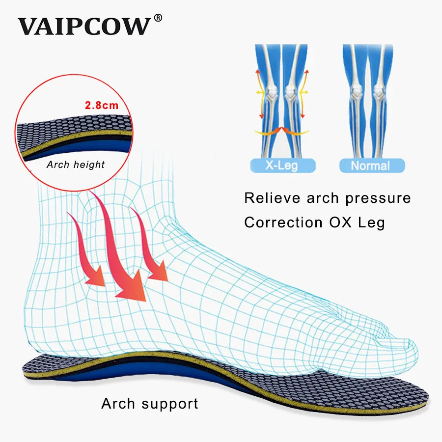VAIPCOW ортопедические стельки EVA стельки ортопедические для плоских ног Арка Поддержка ортопедические стельки для мужчин и женщин OX ноги обуви колодки