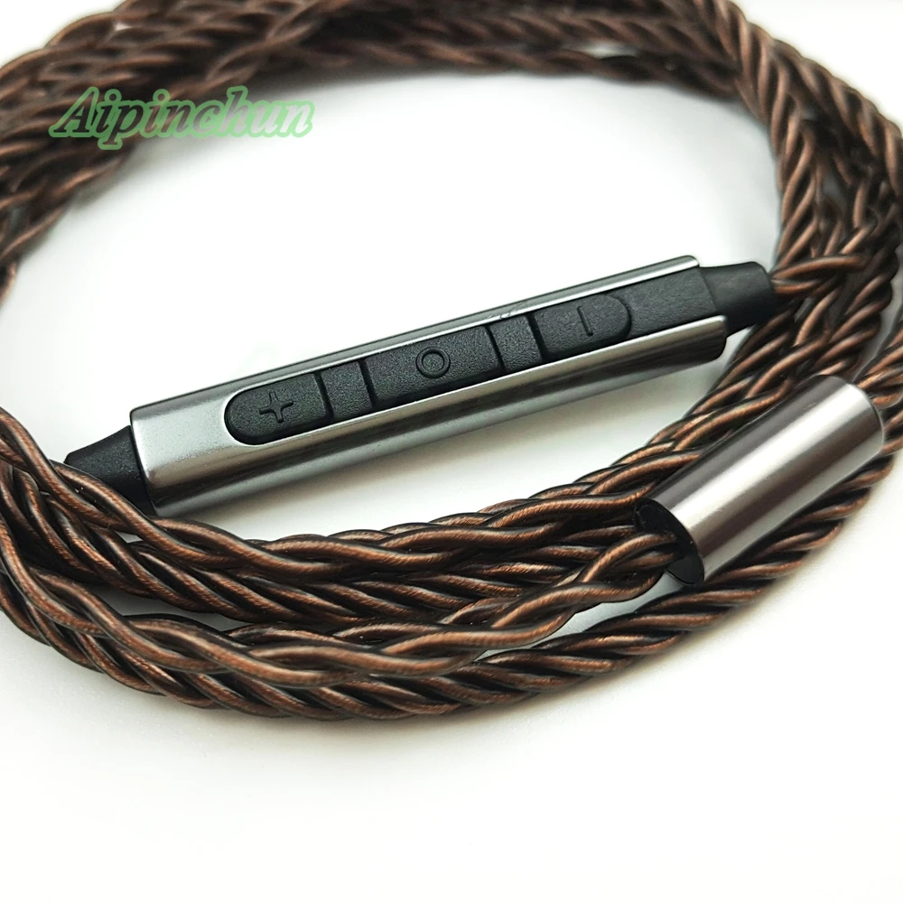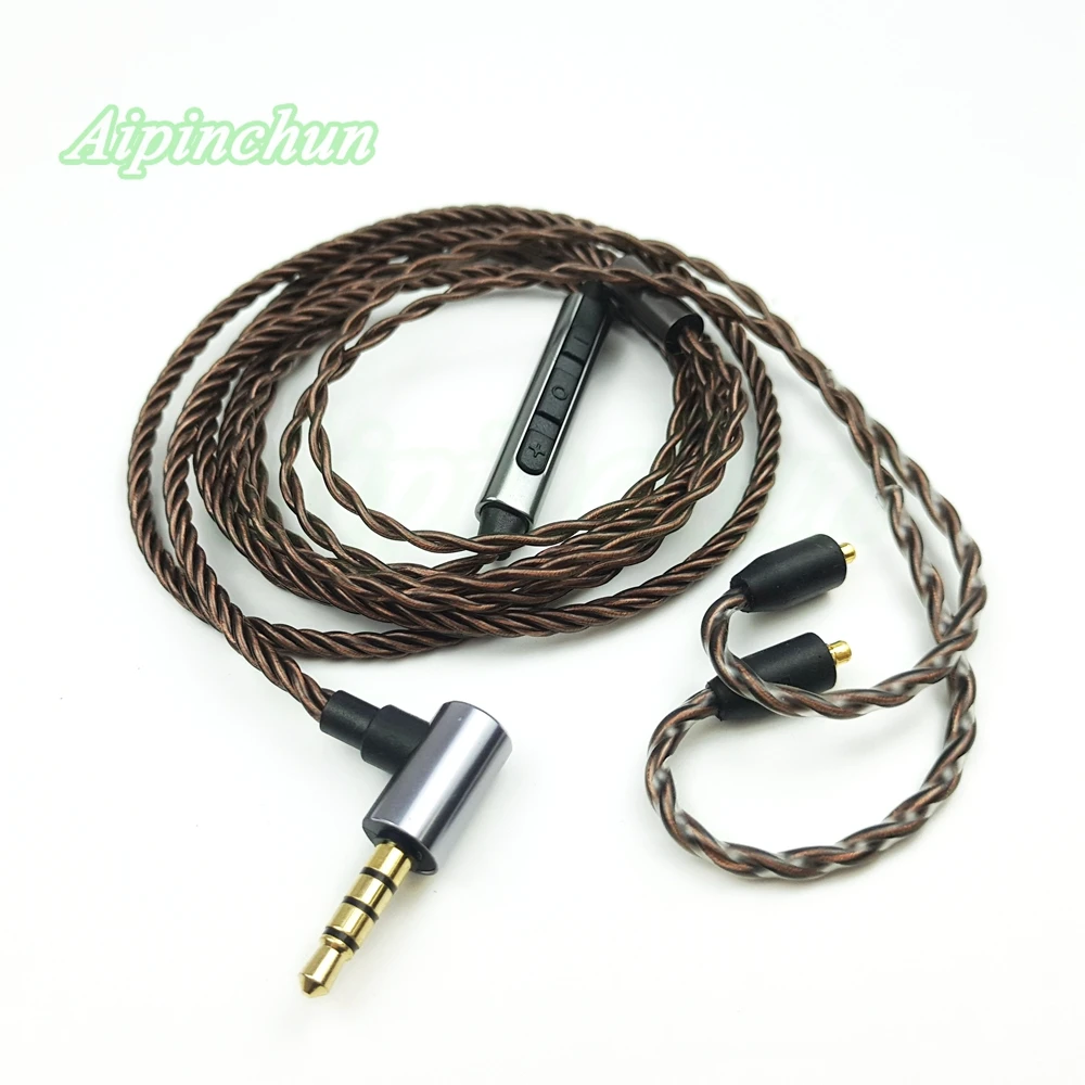 Кабель для наушников Aipinchun MMCX, сменный контроллер громкости с микрофоном для Shure SE215 SE315 SE425 SE535 SE846, гибкий разъем 3,5 мм
