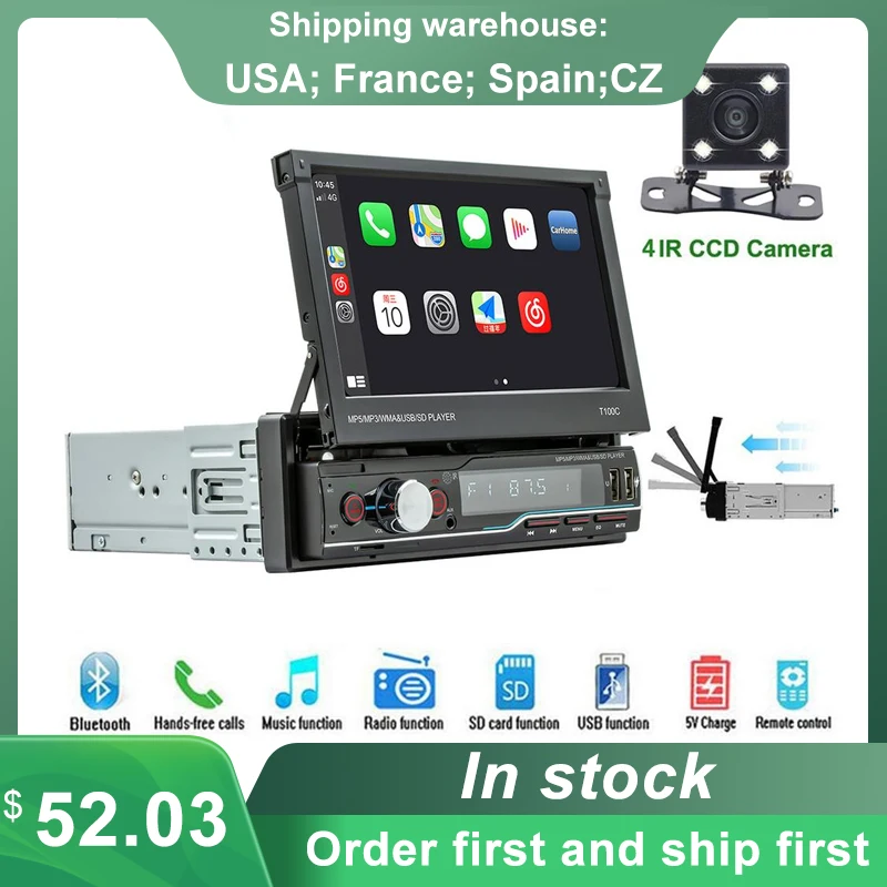 Автомобильный Bluetooth стерео 7 дюймов 1 DIN мультимедийный плеер Apple CarPlay сенсорный экран Выдвижной AM/FM/USB/SD автомобильное радио MP5 плеерUSD 118,63/шт.