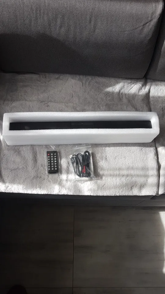 Как саундбар конечно не назовешь, брал для ноутбука на работе, громкости хватает для не большого помещения, баса так такого нет, что то вроде небольших портативных колонок только динамиков больше придается обьемность звука, а так все работает есть встроенный аккум