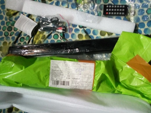 Доставлен СДЭК курьером домой(очень удобно). Упаковано отлично:коробка пенопласт+двойная лента и целофан, отличное новое состояние, все функции отлично работают, прекрасный звук, подключил к телевизору, отличное добавление к сабвуферу, Всем рекомендую товар и продавца!