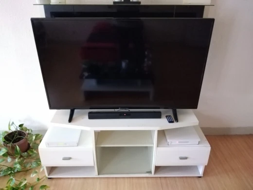 отличная колонка. за эти деньги. брал с купоном большую за 1500р. работают все функции. поставил под телек. поместилось от ножки до ножки. мне нравится.