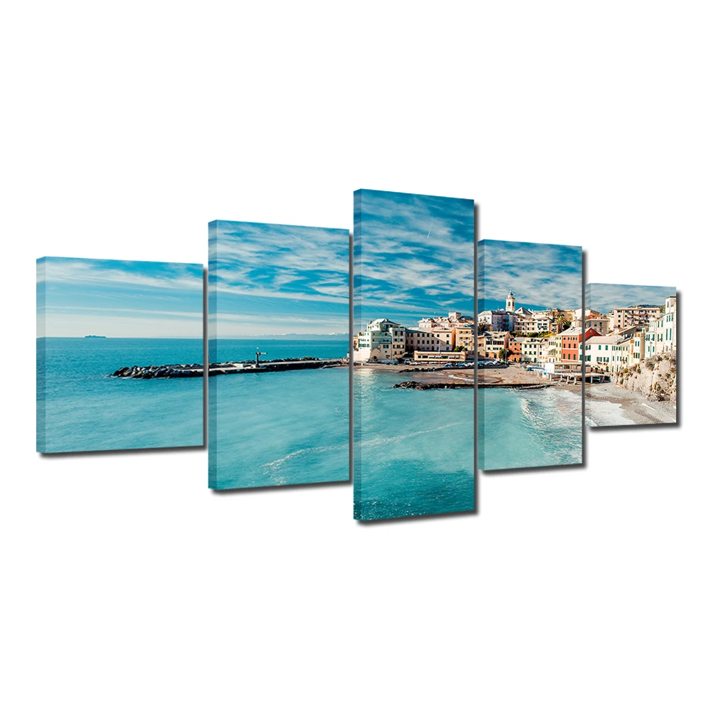 Настенные художественные картины, HD принты, холст, 5 шт., широкая картина с морским пейзажем, плакаты и принты для гостиной, домашний декор, рамки