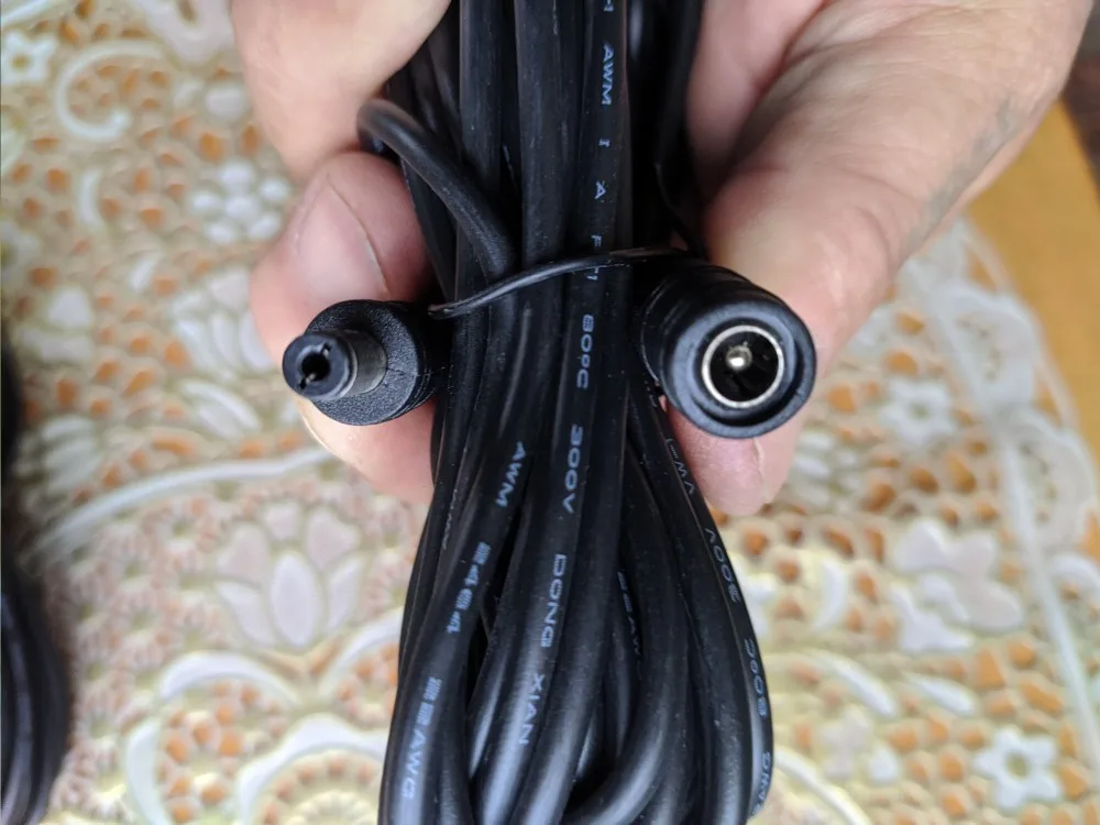 Провод соответствует описанию. К сожалению, мне не подошёл. Обратите внимание на два момента: 1. Разъём "папа" имеет внутренний диаметр 2.1 (бывает 2.5) 2. Провод очень тонкий, т.о. Подходит только для слаботочных потребителей, например камера наблюдения. Если вы планируете таким проводом запитать что-то более мощное (например проектор как я) - будет падение напряжения. Лучше заказать сразу толстый провод за 1к рублей. Не экономьте.
