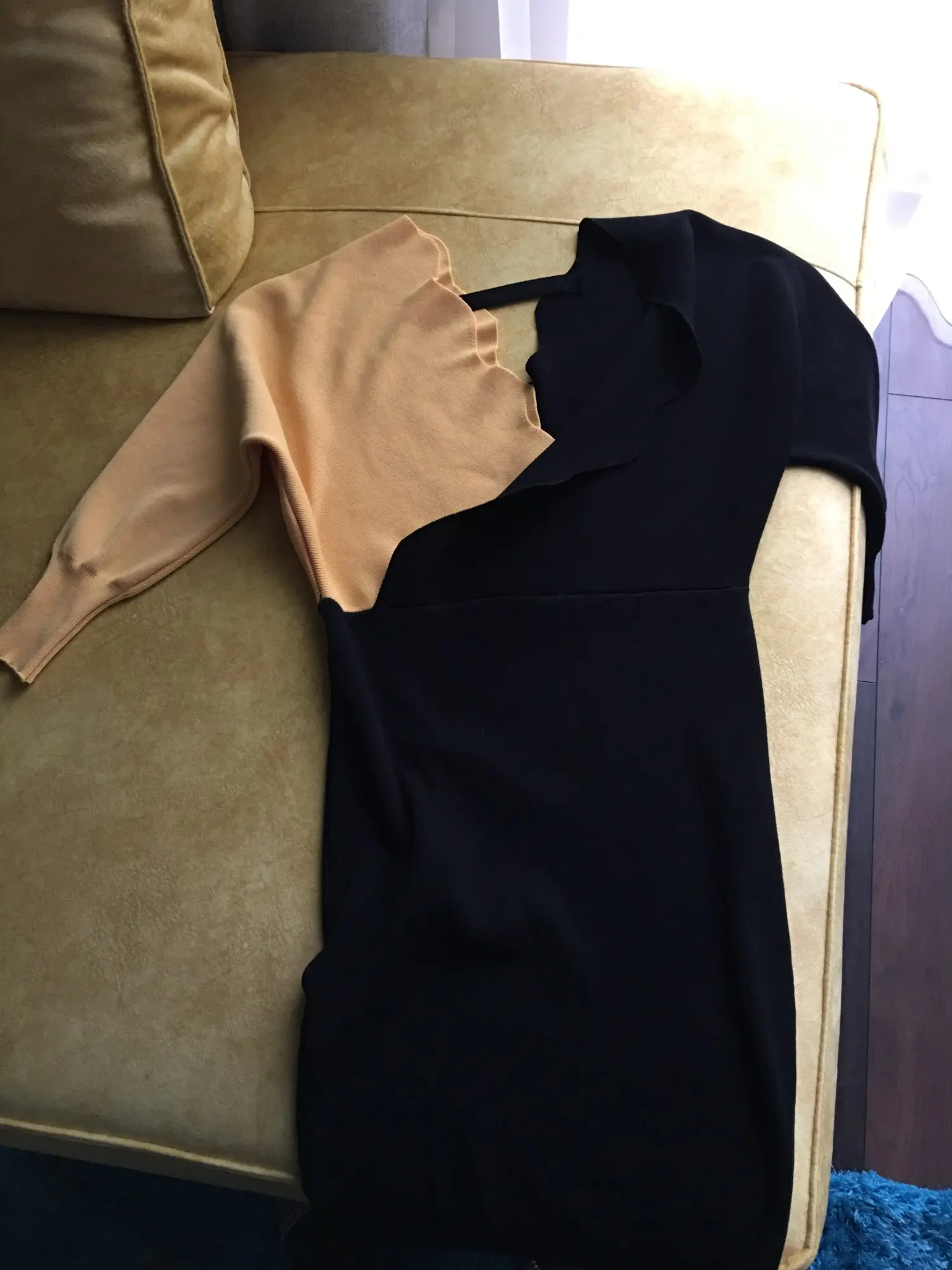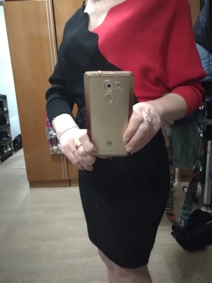Платье хорошего качества, на ОГ 98, ОБ 100, платье в обтяг, можно было посвободнее, на рост 175см, рукава короткие, можно носить как 3/4, минус, там где рукав цветной, манжета прошита черными нитками, выделяется, товар отслеживался, пришел за 19 дней
